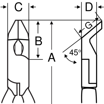 - Kształt: płaszczyzny ostrza pod kątem 45 ° dla pracy w trudnodostępnych miejscach