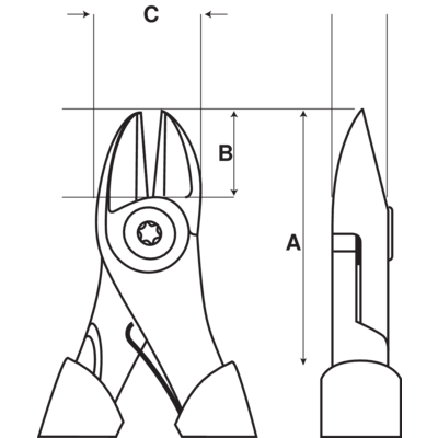 - Ucinaki boczne o zakresie cięcia drutów 0,8 Ø dla miedzi i żelaza