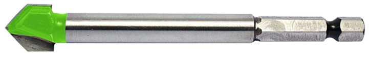 Wiertło z 2-ostrzowym wierzchołkiem z węglików spiekanych i chwytem sześciokątnym 1/4”. Do wiercenia w szkle, lustrach, butelkach, glazurze, miękkiej ceramice i porcelanie.