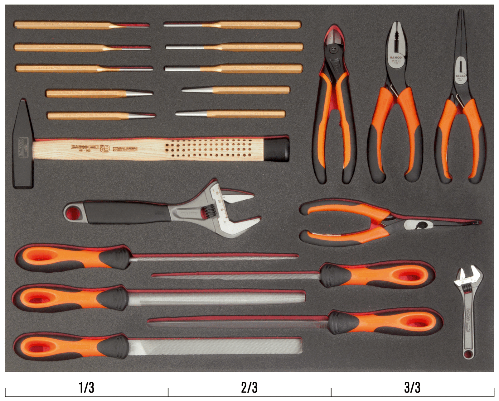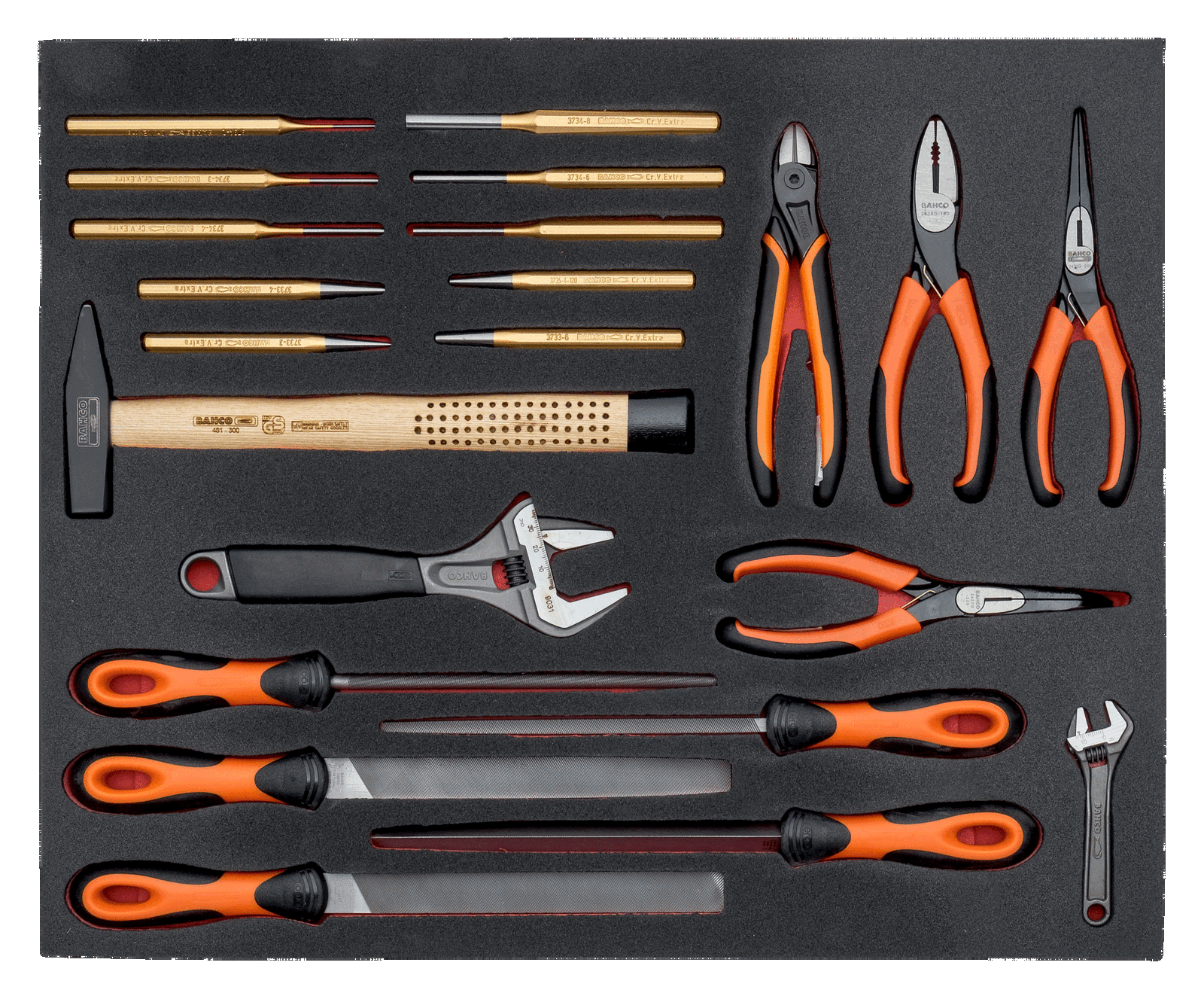 Wkład narzędziowy – klucze nastawne, narzędzia do pobijania, pilniki warsztatowe, szczypce BAHCO