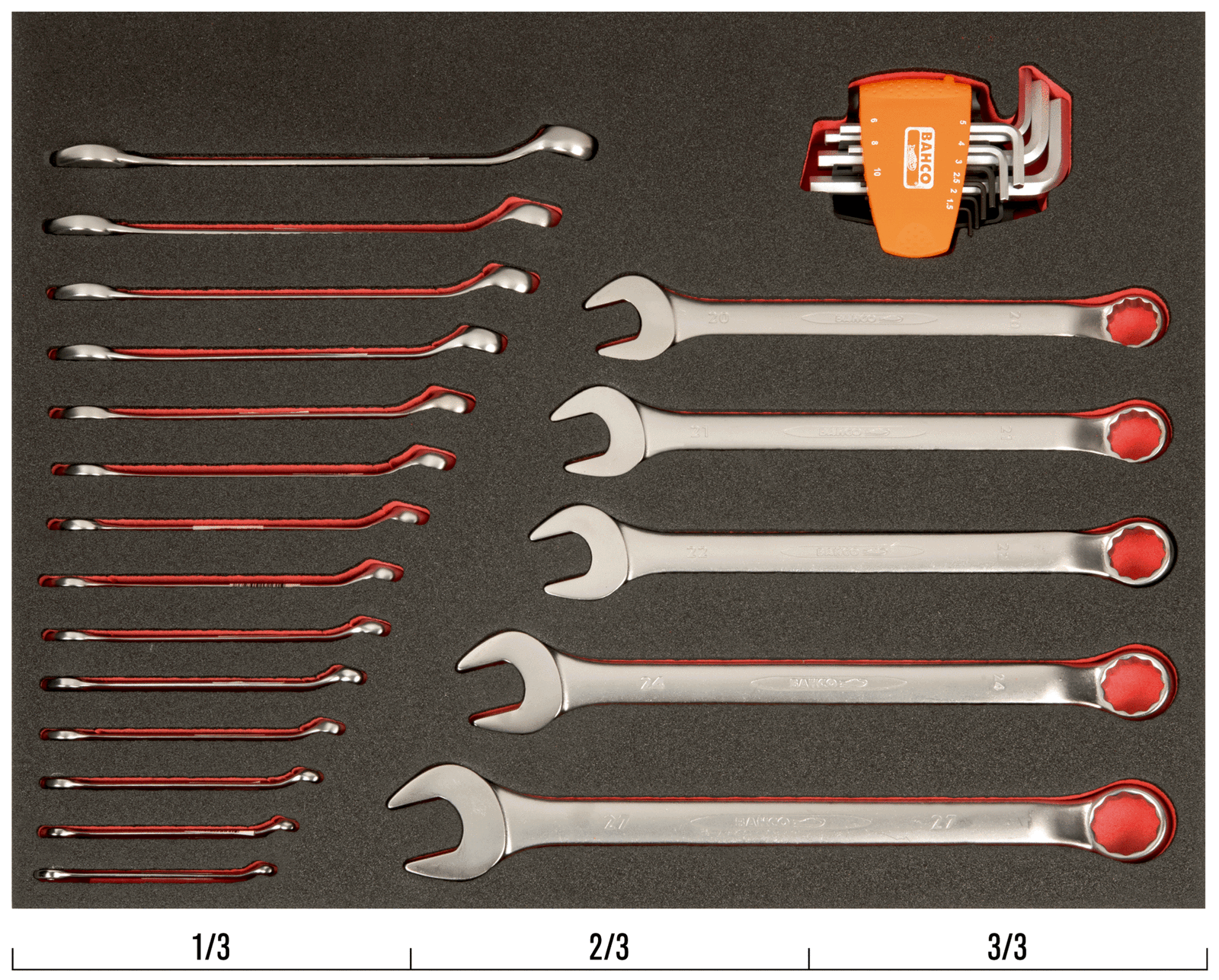 Wkład narzędziowy – Klucze płasko-oczkowe odsadzane 28 el. BAHCO