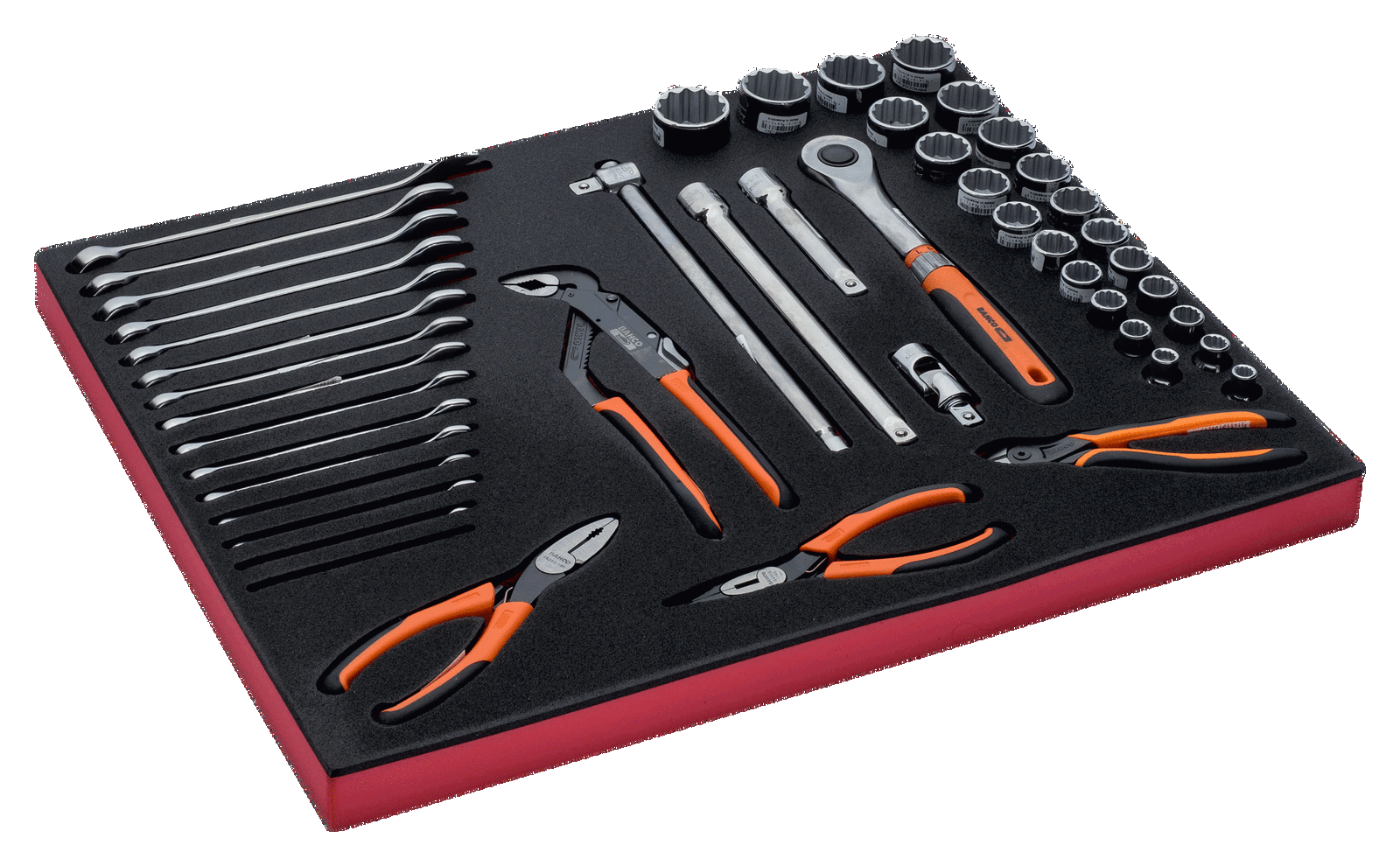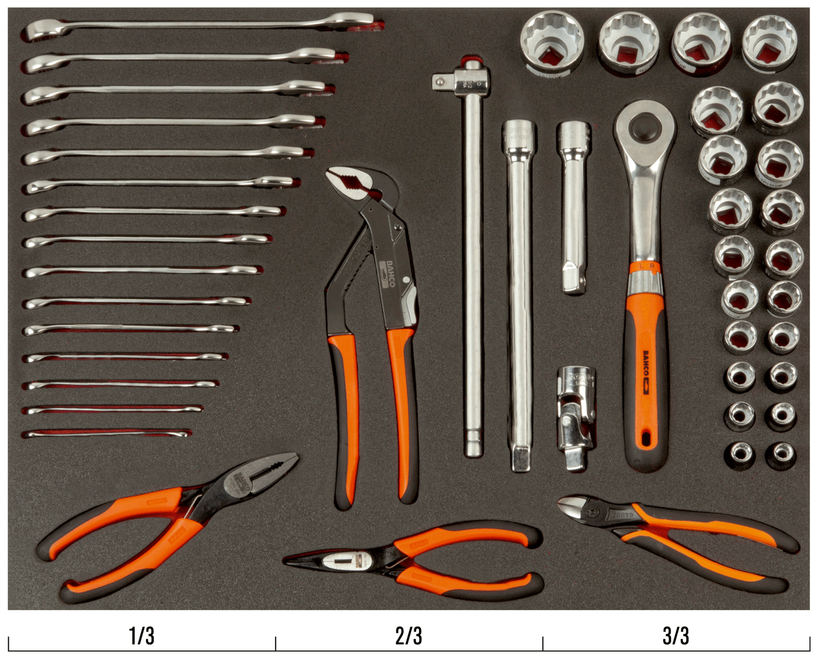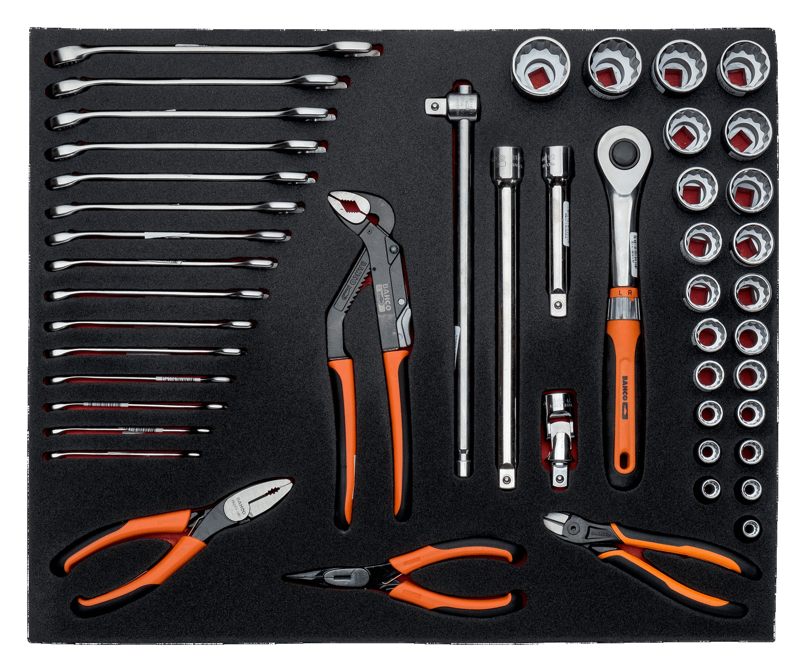 Wkład narzędziowy – nasadki 1/2″ i klucze płasko-oczkowe – 47 elementów BAHCO