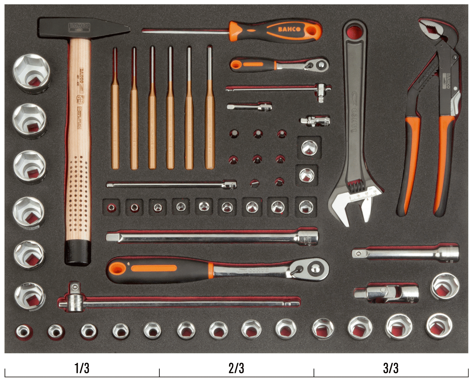 Wkład narzędziowy – nasadki i szczypce, 60 elementów BAHCO