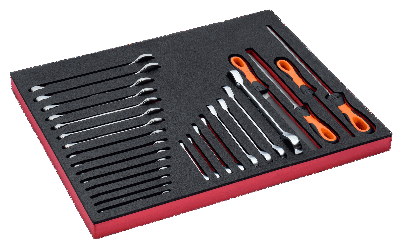 - Pilniki warsztatowe & Klucze: Klucze płasko-oczkowe standardowe + grzechotkowe