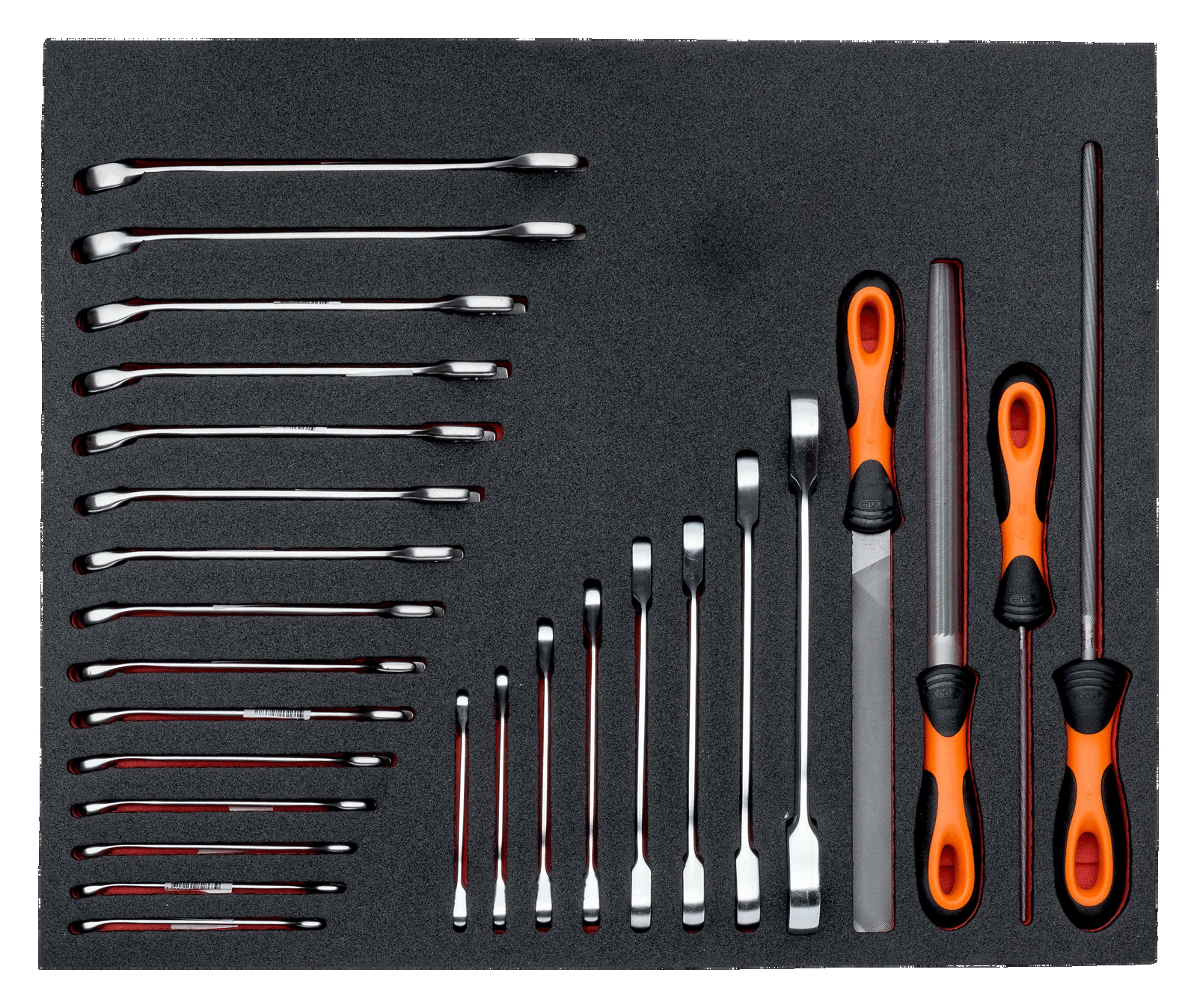 Wkład narzędziowy – pilniki warsztatowe i klucze płasko-oczkowe, 27 el. BAHCO
