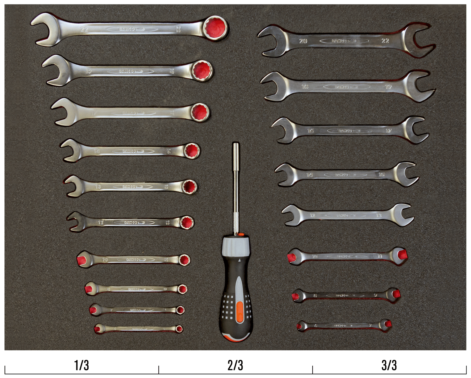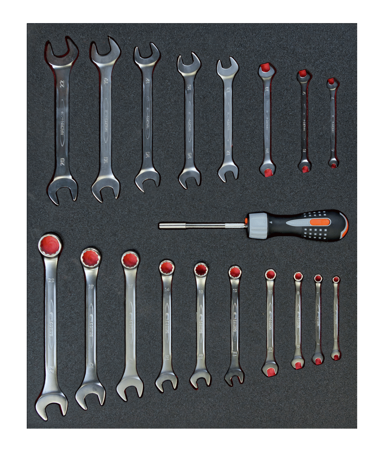 Wkład narzędziowy z kluczami płasko-oczkowymi i płaskimi – 25 elem. BAHCO