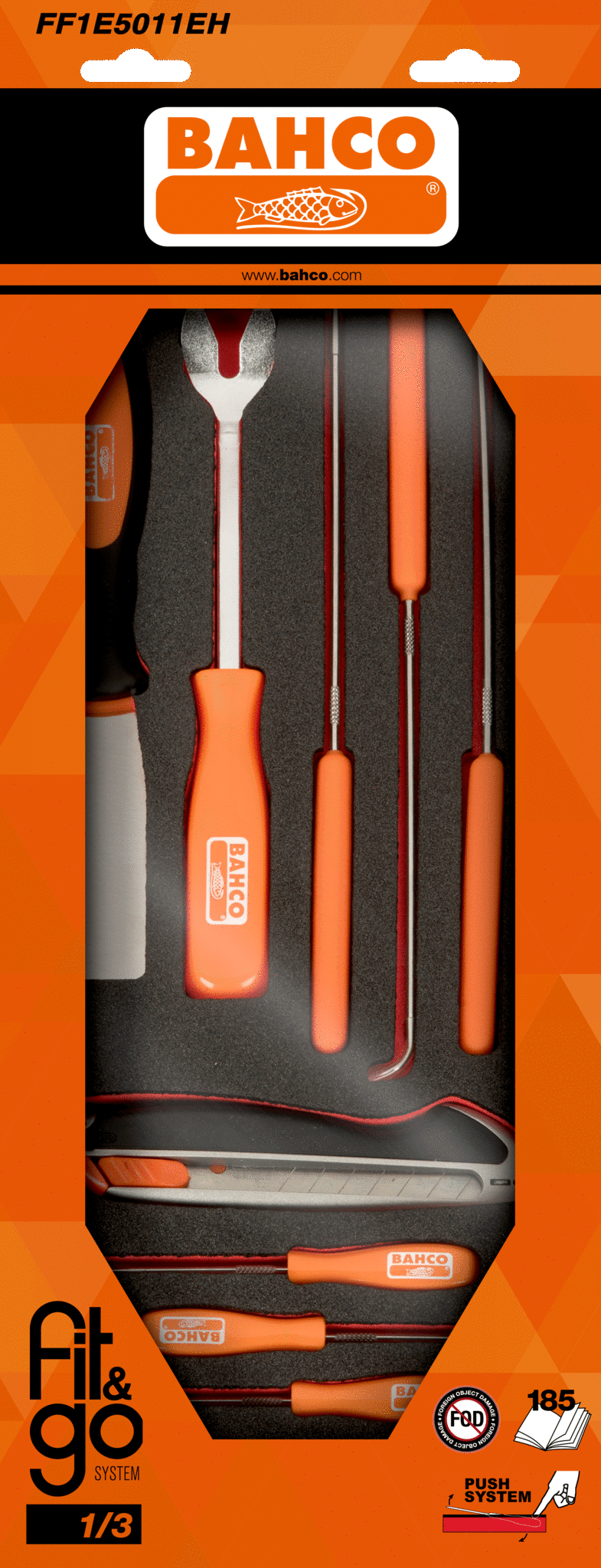 Wkładka z pianką z szydłami, wieszakami i nożem ERGO 18 mm – 11 szt. zestaw warsztatowy BAHCO