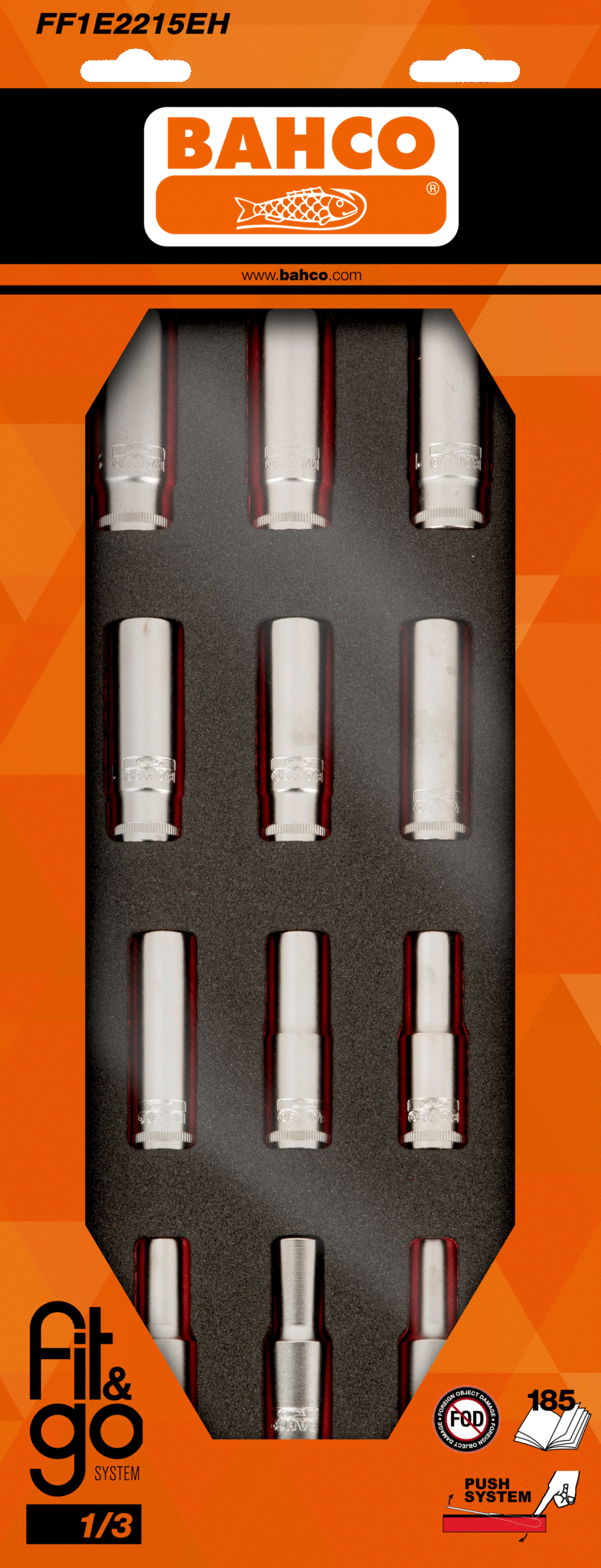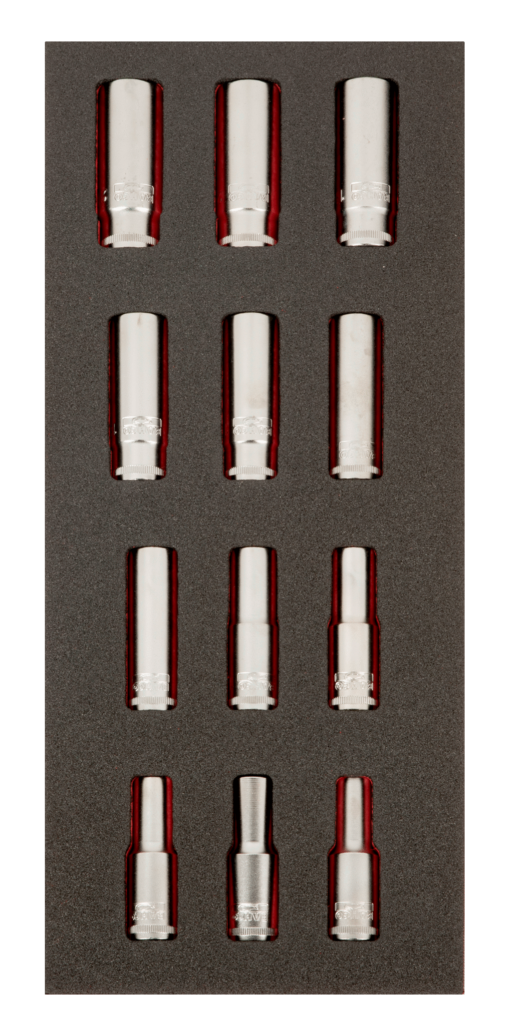 Wkładka z pianki 1/3 z dwunastoma nasadkami 1/2″ wydłużonymi BAHCO