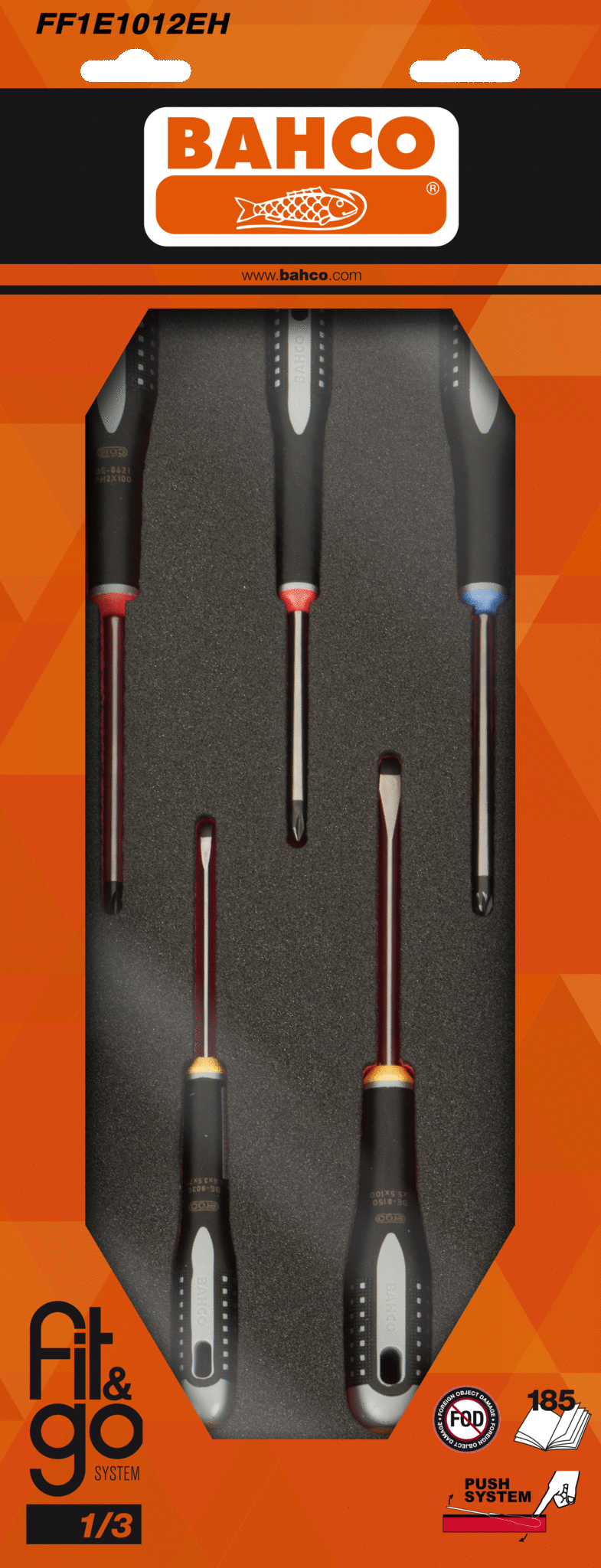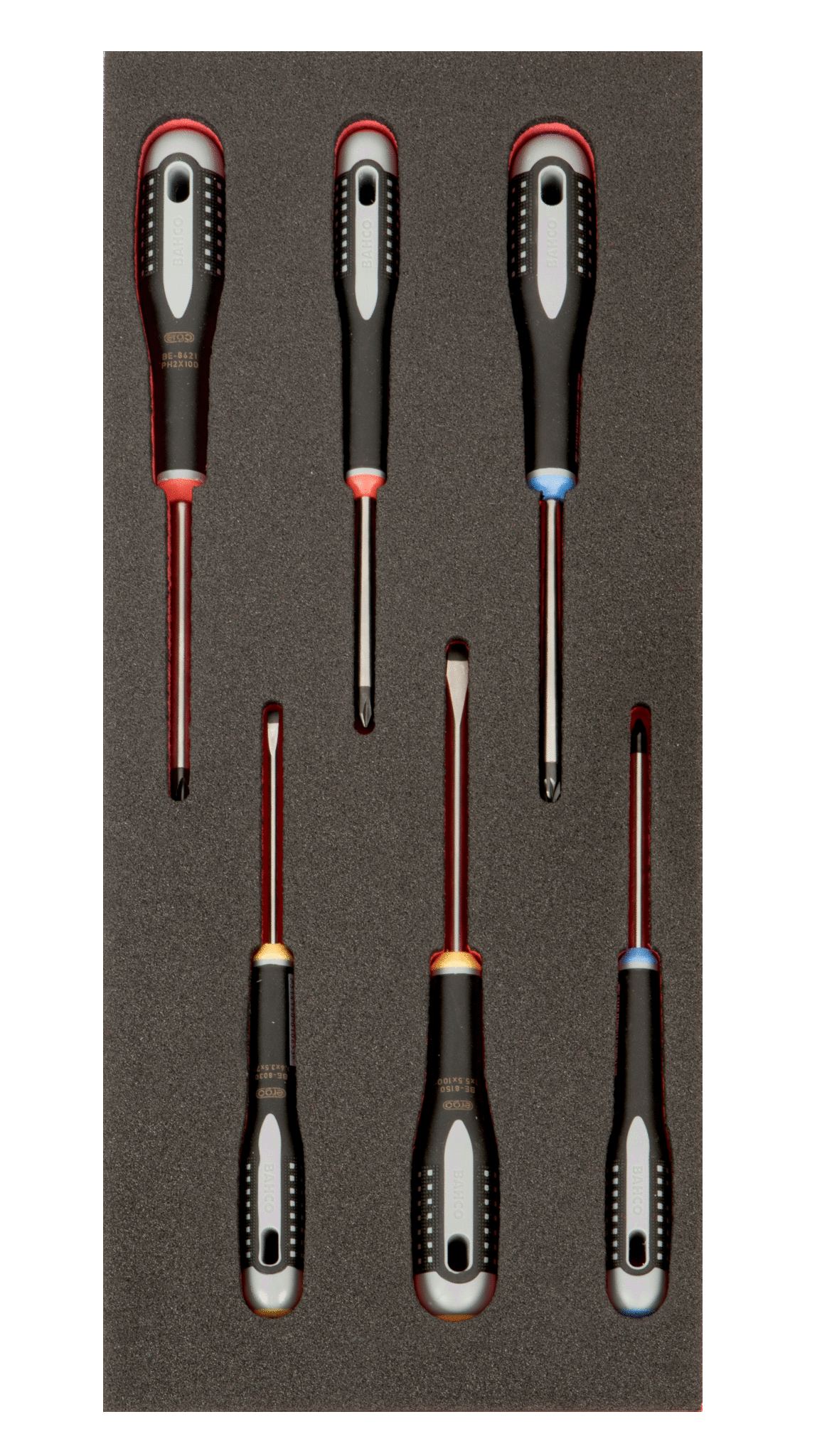 Wkładka z pianki 1/3 z zestawem wkrętaków ERGO płaskich i PH/PZ – 6 szt. BAHCO