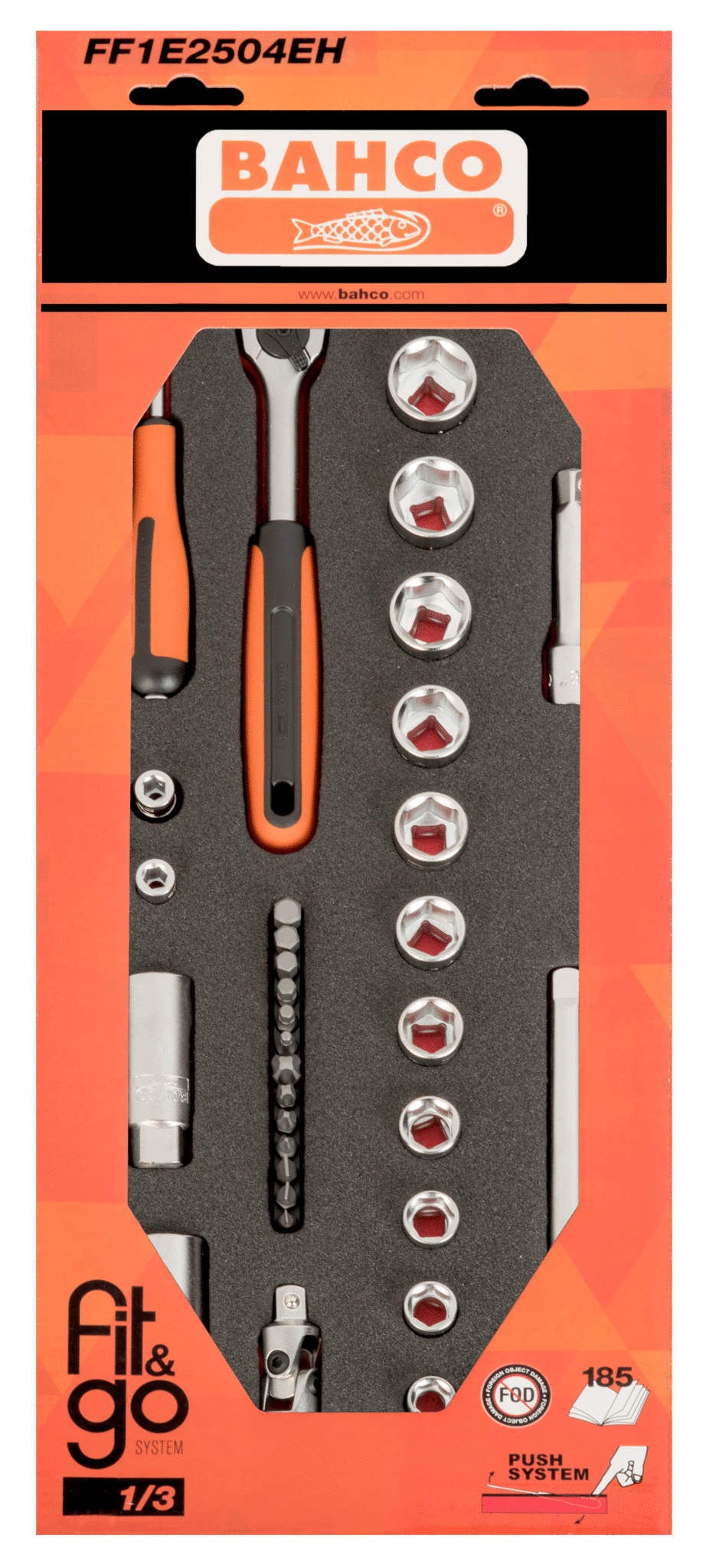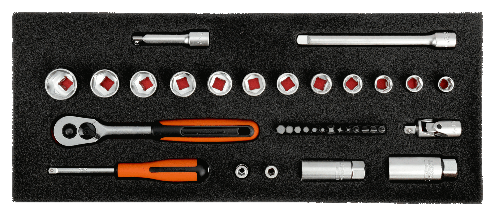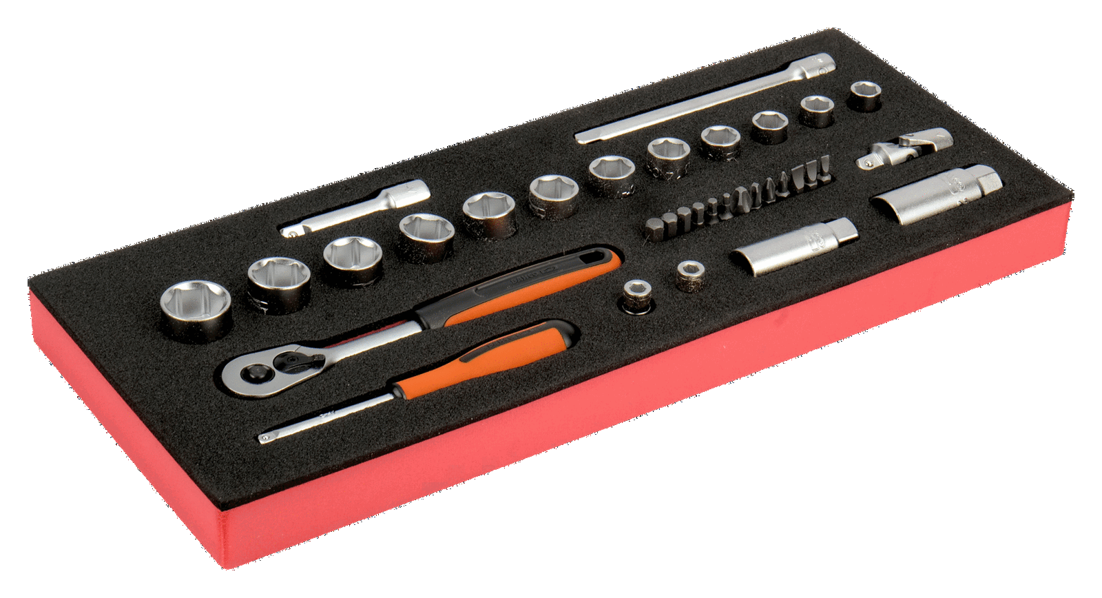 Wkładka z pianki z zestawem nasadek 1/4″ i 3/8″ – 33 elementy BAHCO