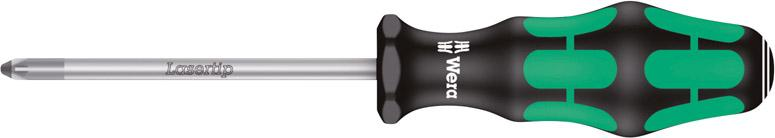 Z lasertip i mikroskopijnie chropowatą powierzchnią. Zmniejszona siła nacisku zapobiega ześlizgiwaniu się z łba śruby. Z wielokomponentową rękojeścią Kraftform® Plus, ergonomiczną, ze zintegrowanymi miękkimi strefami poprawiającymi chwyt, twardymi strefami chwytu zwiększającymi prędkość pracy i sześciokątnym zabezpieczeniem przed staczaniem się.