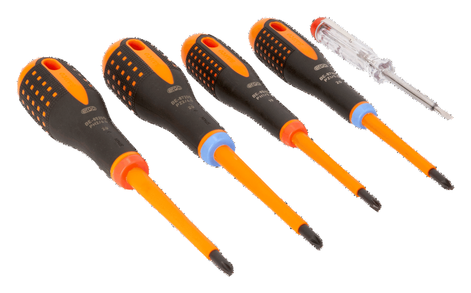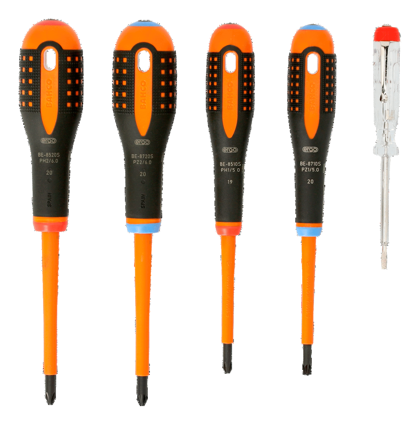 - Zestaw wkrętaków izolowanych ERGO™ do śrub prostych, Phillips i Pozidriv, 4 sztuki (8 różnych końcówek)
