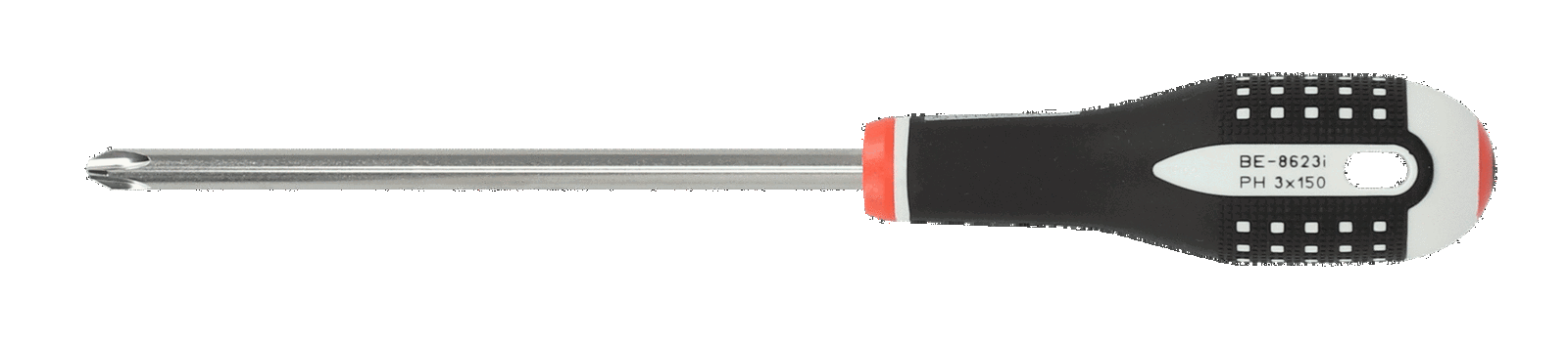 - Rękojeść: 3-komponentowa dla maksymalnego komfortu i lepszego przenoszenia siły na końcówkę wkrętaka