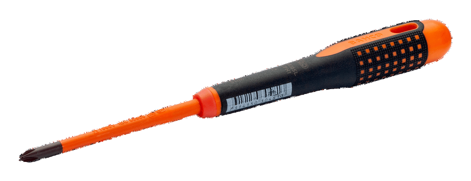 - Izolowany wkrętak ERGO™ z cienkim grotem do śrub kombi prostych/Phillips zaprojektowany zgodnie z koncepcją i procesem ERGO™