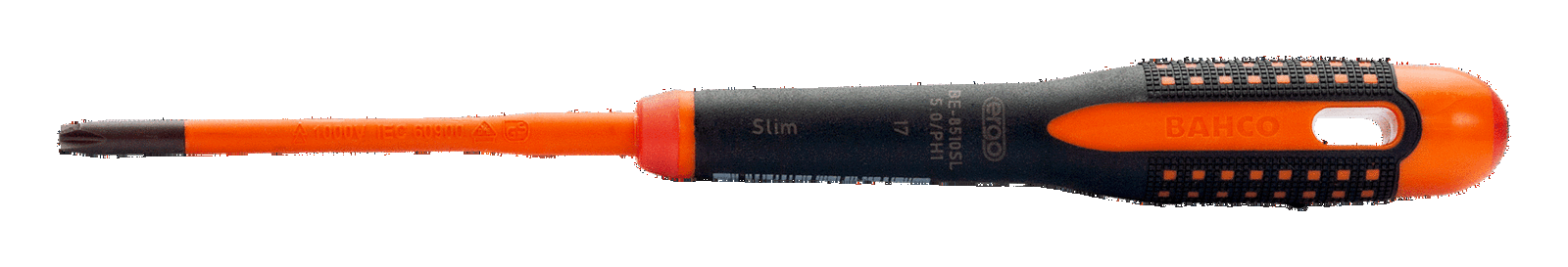 - Izolowany wkrętak ERGO™ z cienkim grotem do śrub kombi prostych/Phillips zaprojektowany zgodnie z koncepcją i procesem ERGO™