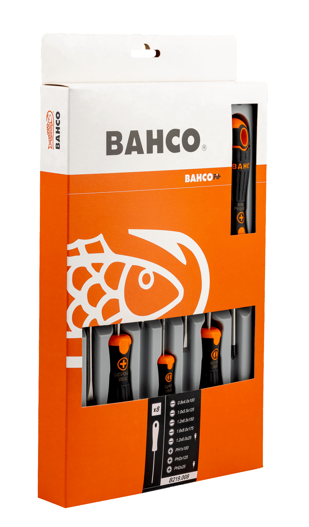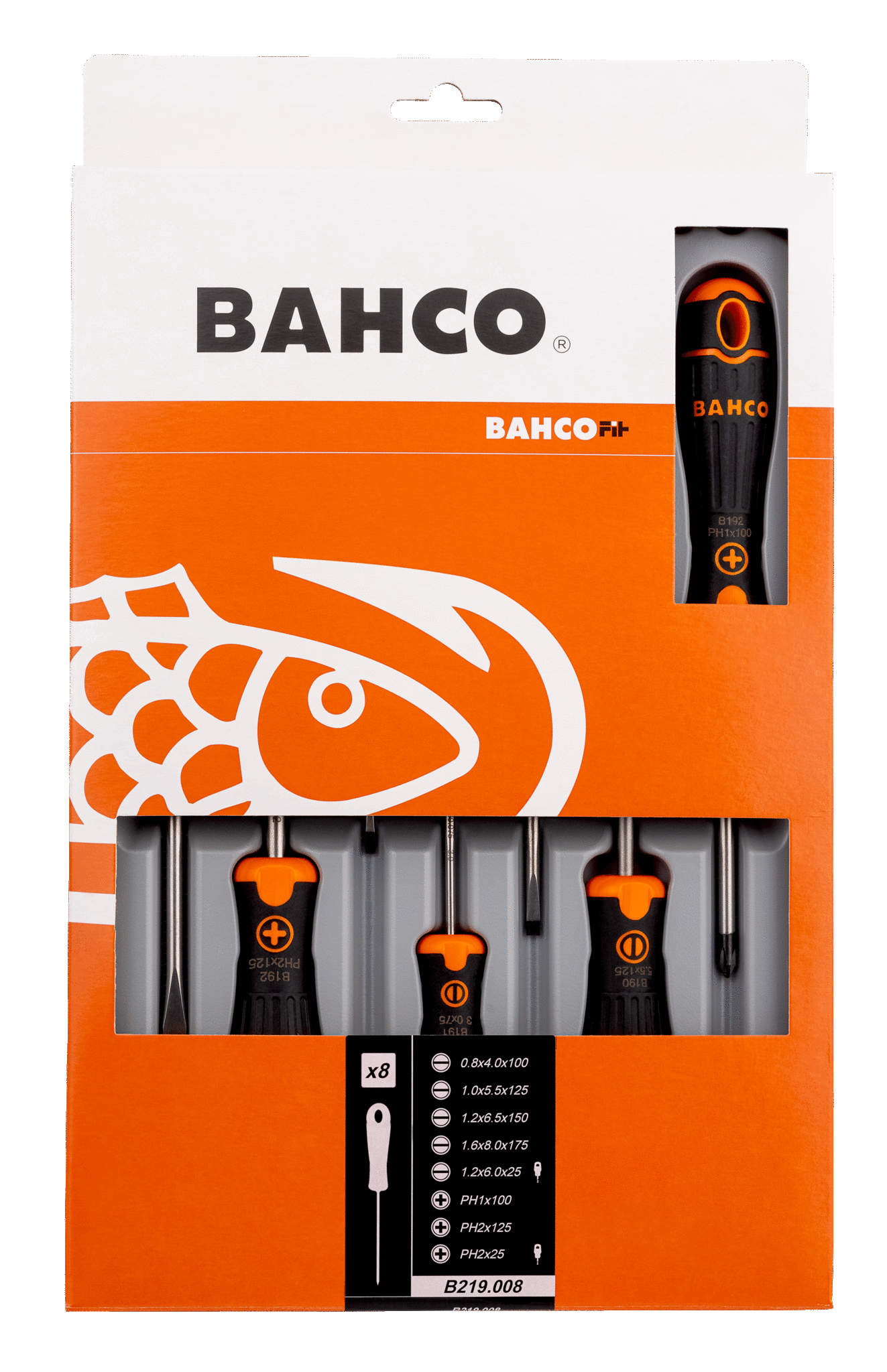 Wkrętaki BahcoFit zestaw 8 sztuk, płaskie i Phillips BAHCO