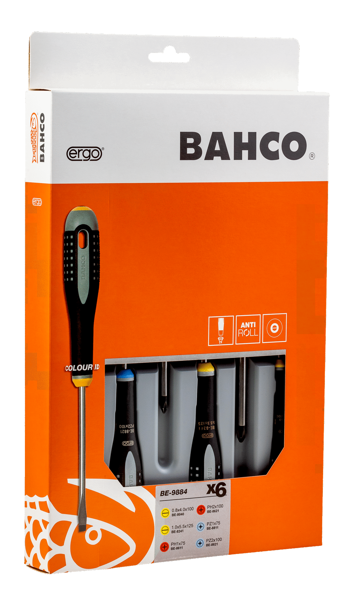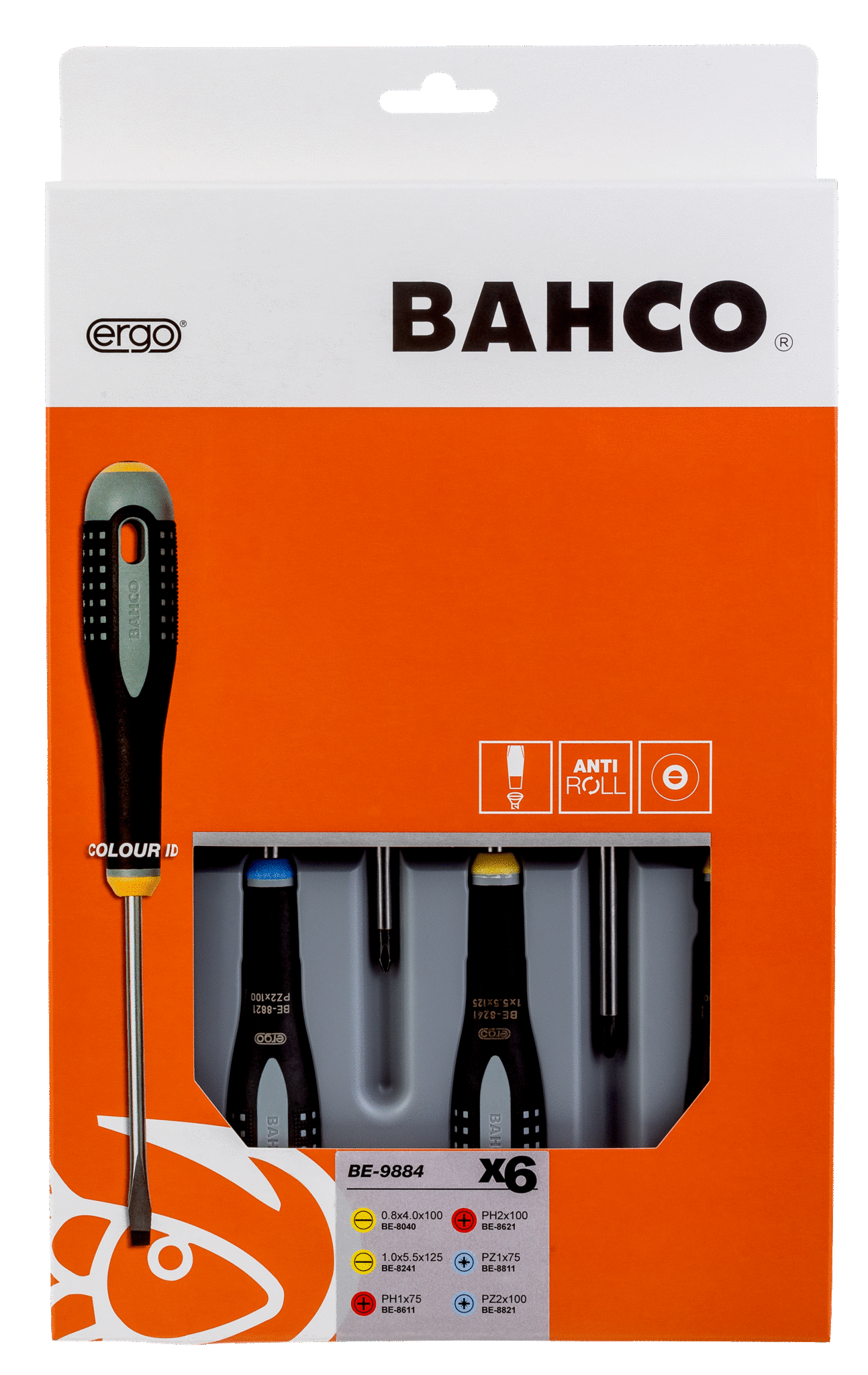 Wkrętaki ERGO, zestaw 6 elementów, płaskie/Phillips/Pozidriv BAHCO