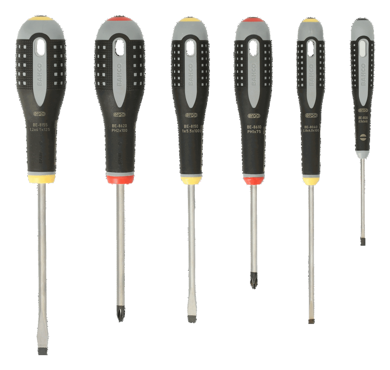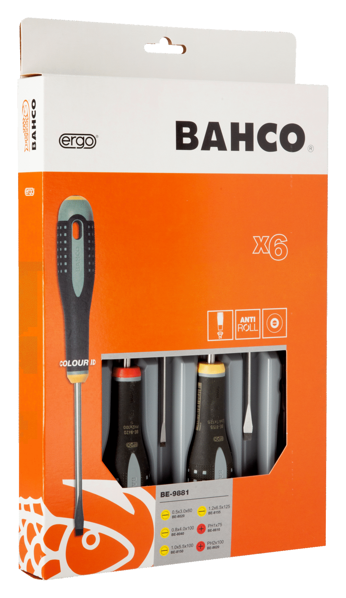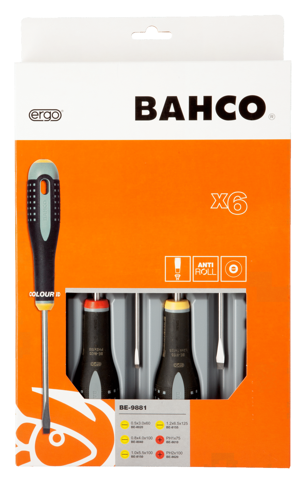Wkrętaki ERGO, zestaw 6 sztuk, płaskie i krzyżowe typ Phillips BAHCO