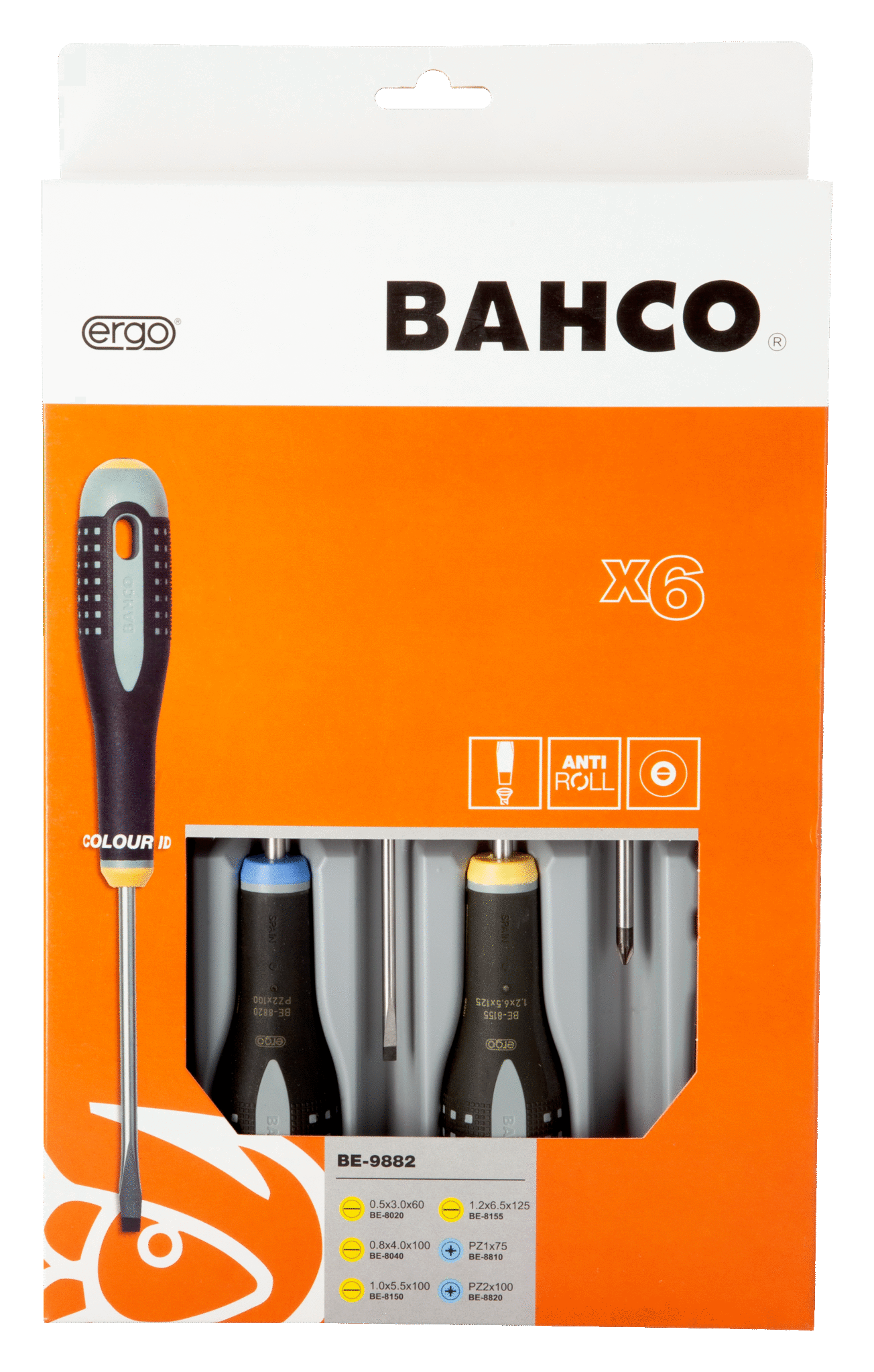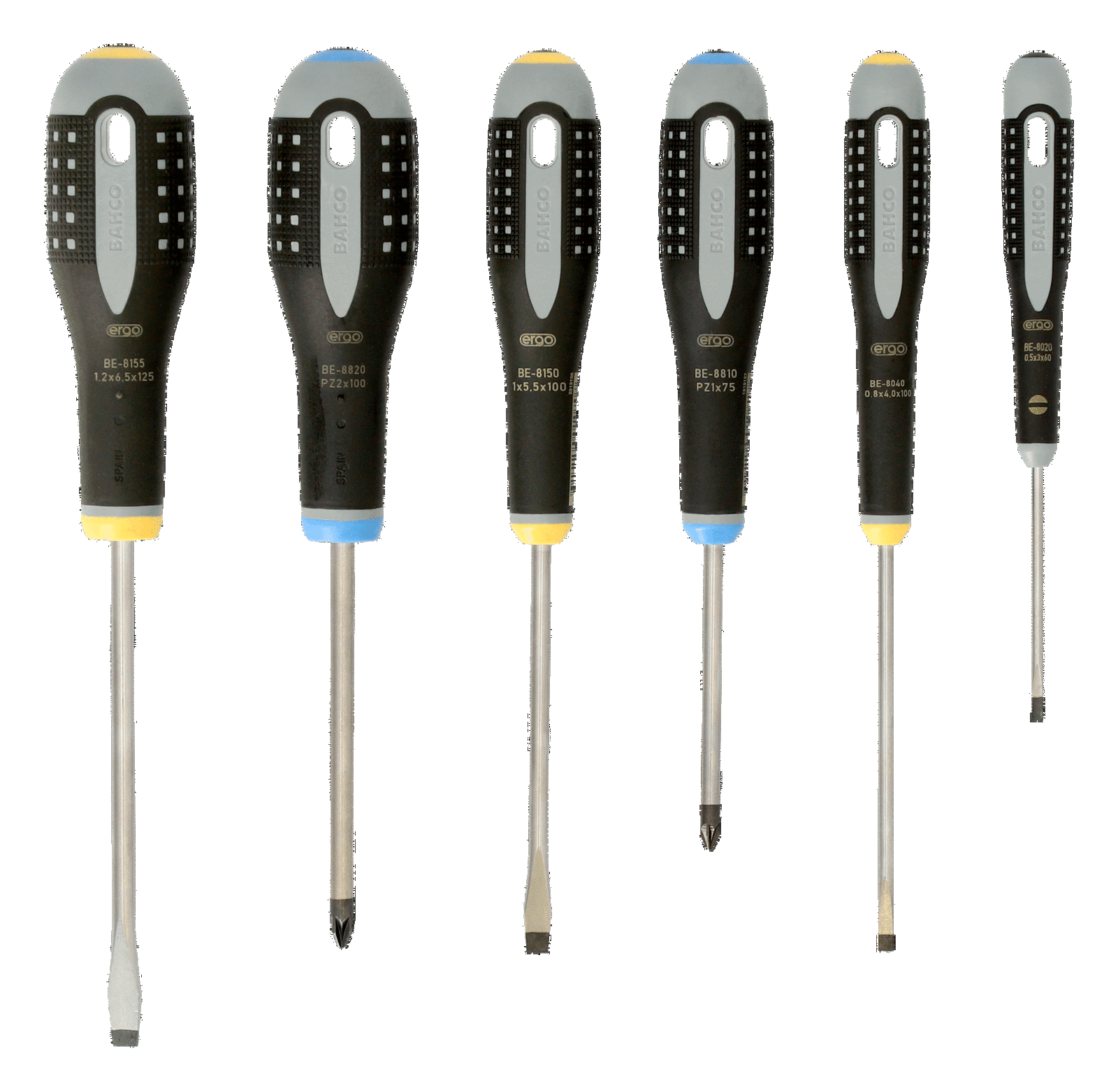 Wkrętaki ERGO™, zestaw 6 sztuk, płaskie i Pozidriv BAHCO
