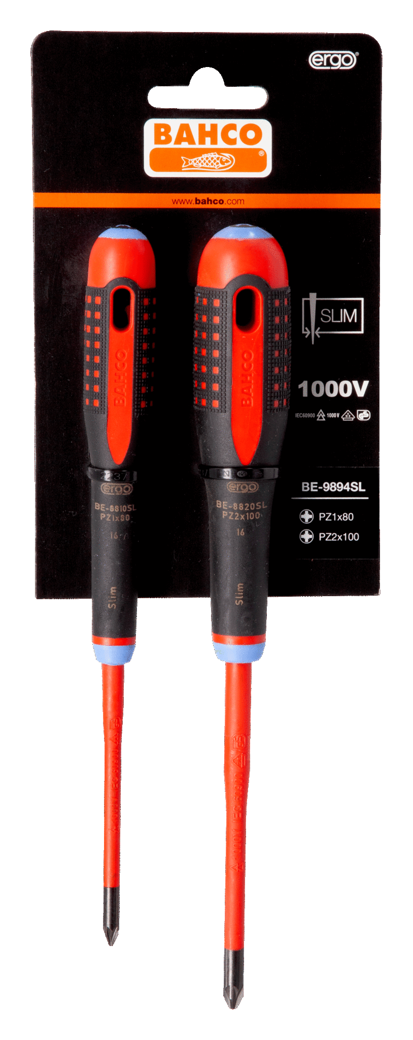 Wkrętaki izolowane ERGO™, wąskie, Pozidriv, zestaw 2szt. BAHCO