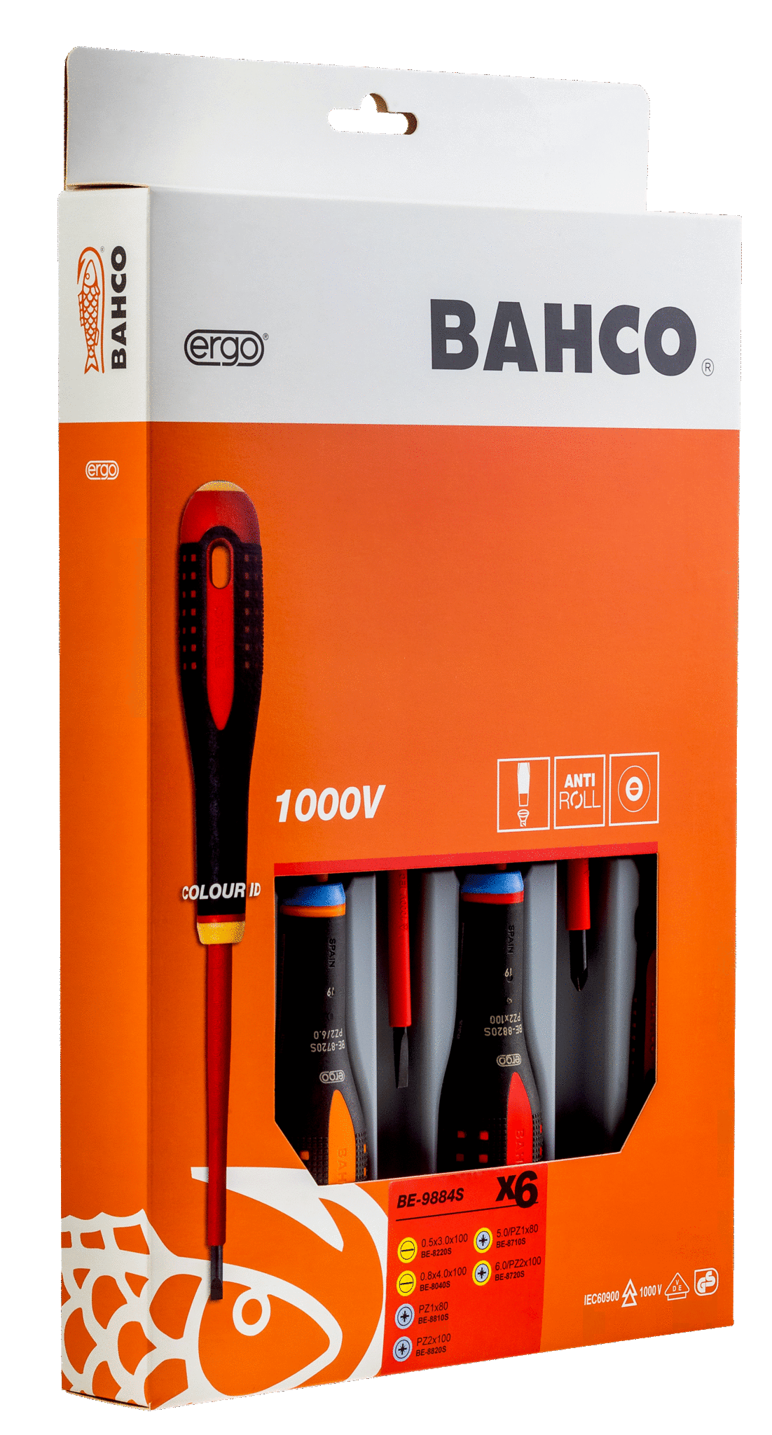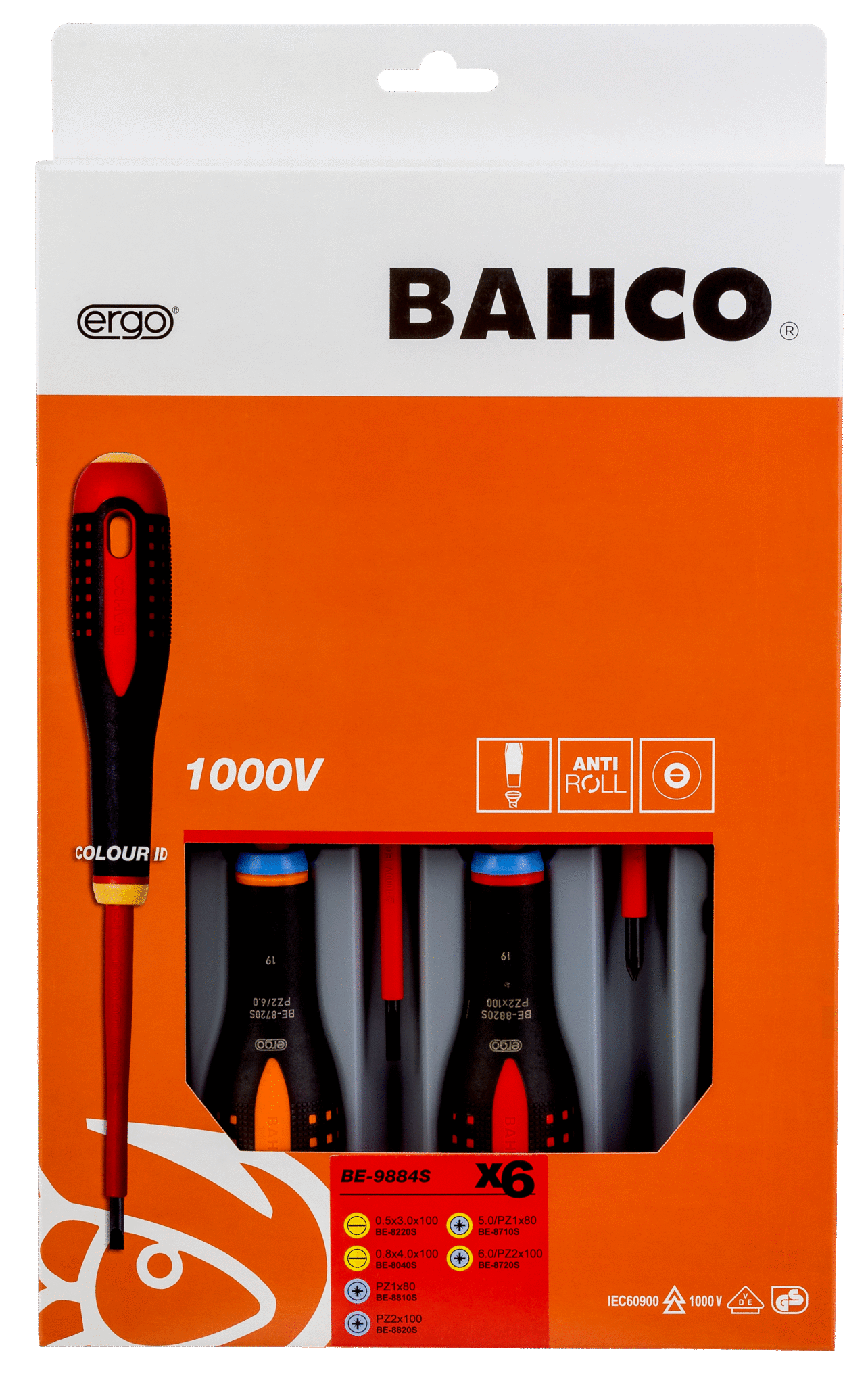 Wkrętaki izolowane ERGO zestaw 6 sztuk, śruby proste i Pozidriv/Combi BAHCO