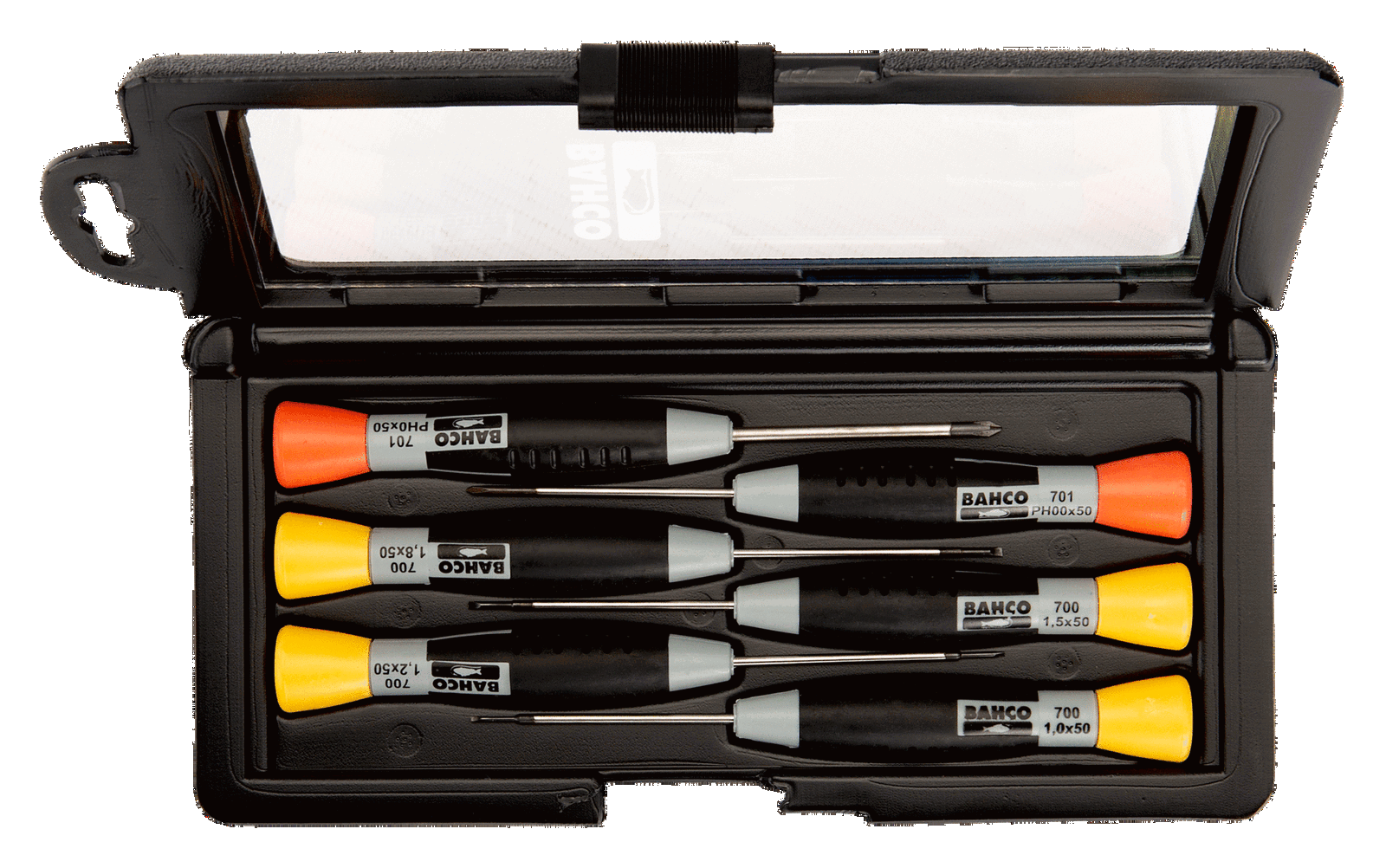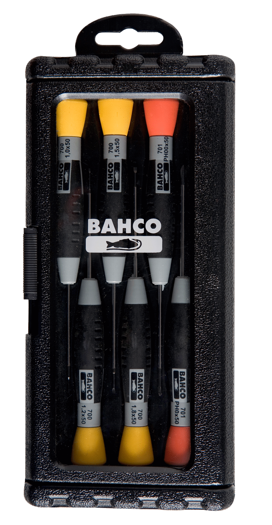 Wkrętaki precyzyjne, zestaw 6 szt., do śrub prostych i Phillipsa BAHCO
