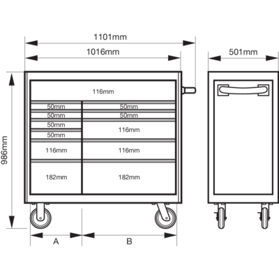 986 x 501 x 1100 mm
