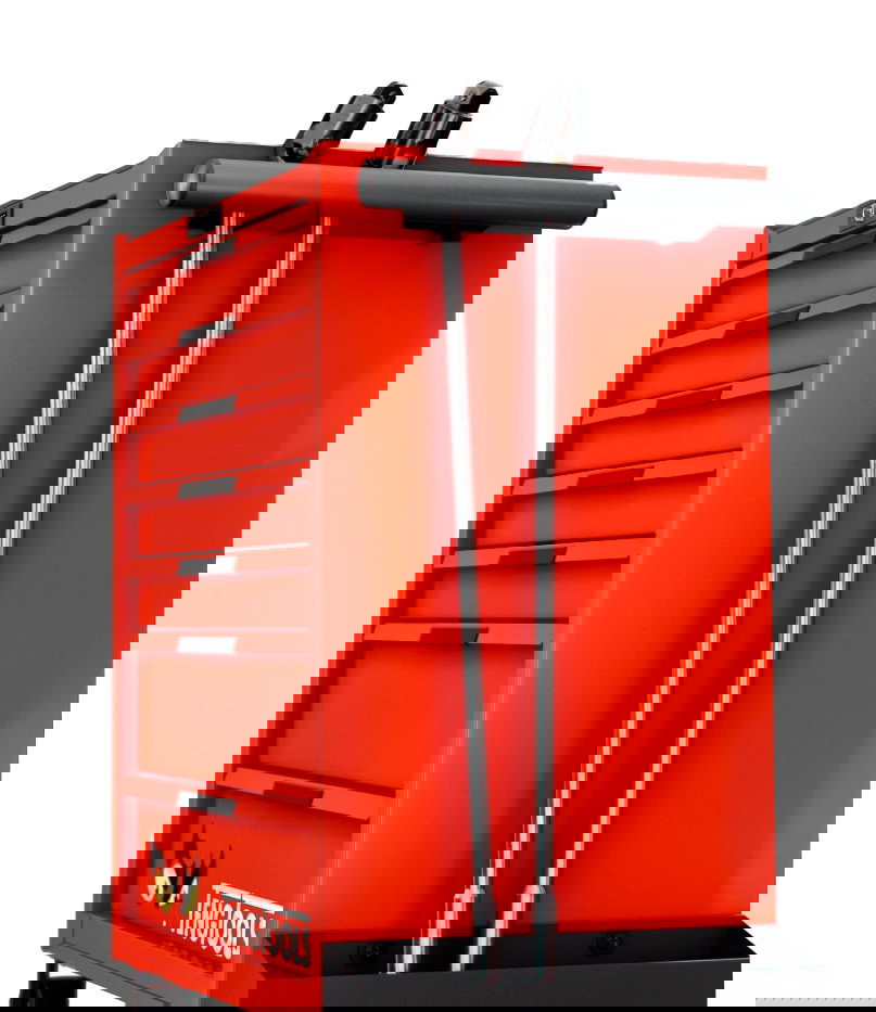 Wózek 26-calowy, matowy, czerwony, zawierający 282 elementy, dla profesjonalistów z branży. Każda z 7 szuflad ma nośność 30 KG. 3-stopniowe prowadnice na łożyskach kulkowych i maty EVA dla ochrony. 3-częściowa, gruba stalowa rama szafki. Poddana 5-etapowemu procesowi zapobiegania rdzy bez fosforanów i wykończona powłoką proszkową zapewniającą trwałość. Wyposażony w 5-calowe kółka i wygodny uchwyt ułatwiający manewrowanie. System kontroli narzędzi TengTools zapewniający zorganizowane i dostępne narzędzia.