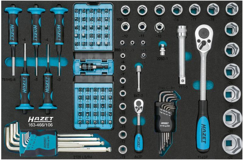 1 moduł narzędziowy z narzędziami do przenoszenia momentu obrotowego 106-cz. o zawartości: