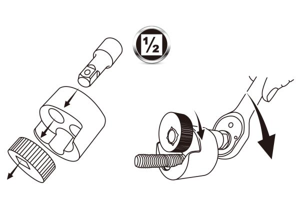 Zakres roboczy: 6-19 mm (1/4 “- 3/4”) Wykrętak należy założyć na szpilkę, przyłożyć grzechotkę/pokrętło z chwytem kwadratowym i przekręcić. Krążek dociskowy przesuwa się w kierunku szpilki usuwając ją Karta produktu – 9TD404-0619M