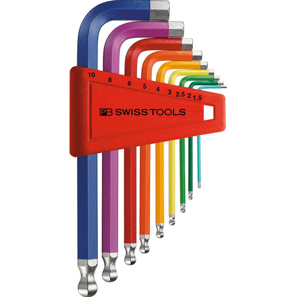 Zest.kluczy trzpien.kąt. w uchw.z tworz.sztuczn. 9-częśc.,1,5-10mm Rainbow końc.kulis.PB Swiss Tools
