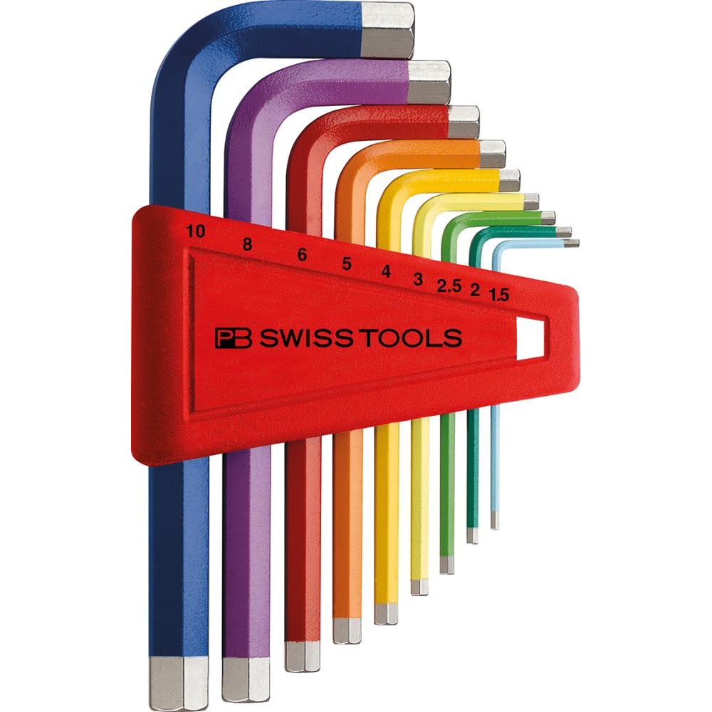 Zest.kluczy trzpien.kąt. w uchw.z tworz.sztuczn. 9-częściowy, 1,5-10mm Rainbow PB Swiss Tools