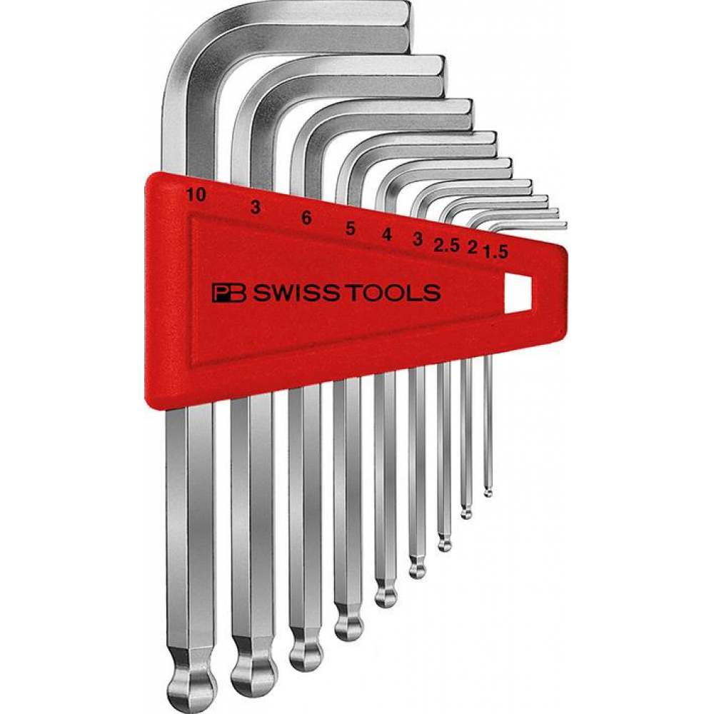 Zest.kluczy trzpien.kąt.w uchwycie z tworz.sztuczn. 9-częściowy, 1,5-10mm końc.kulis.PB Swiss Tools