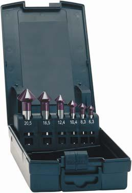 Wykonanie: podobny do normy DIN 335-C. Nowatorski, innowacyjny szlif zaskoku. Optymalna geometria skrawania, a tym samym do 25 % dłuższa żywotność w wersji bez pokrycia; powłoka TiAIN zwiększa żywotność nawet do 40 %. Z prostym rowkiem wiórowym w kształcie litery U i komorami wiórowymi szlifowanymi z pełnego materiału. Ponadto dzięki kątowi natarcia i przyłożenia, nadają się do większości używanych materiałów. Dostarczane w wytrzymałej kasecie, z wysokiej jakości tworzywa sztucznego z funkcją automatycznego wysuwania pogłębiaczy przy otwarciu.