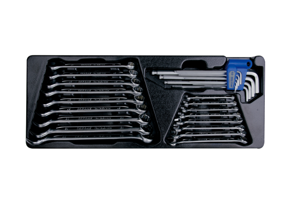 ZESTAW 26cz. – KLUCZE PŁASKO-OCZKOWE 6-22mm, IMBUSY 1120 HEX Z KULKĄ 1,5-10mm, WKŁAD DO SKRZYNKI King Tony