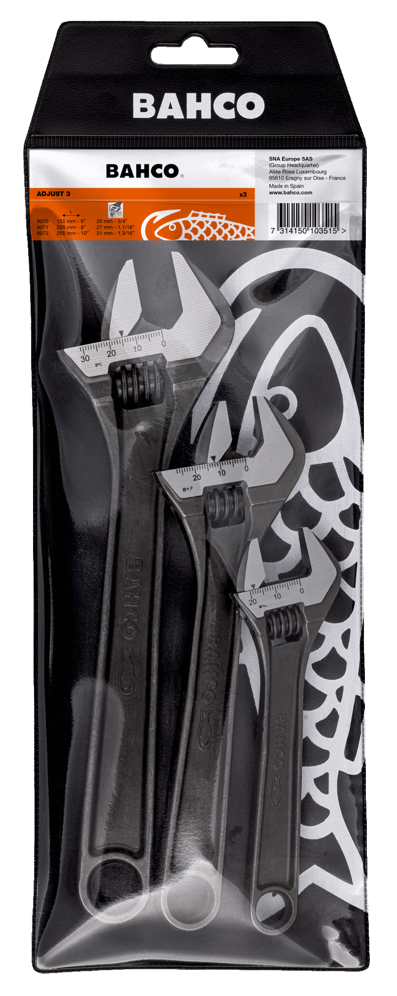 Zestaw 3 kluczy nastawnych serii 80 BAHCO