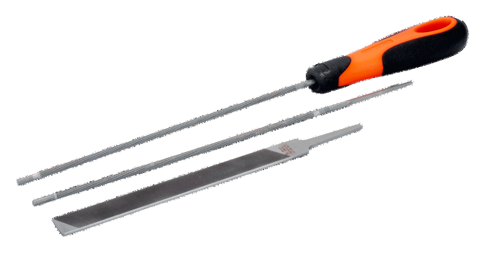 - Zestaw zawiera dwa okrągłe pilniki do pił łańcuchowych 8″ oraz jeden pilnik płaski 6″