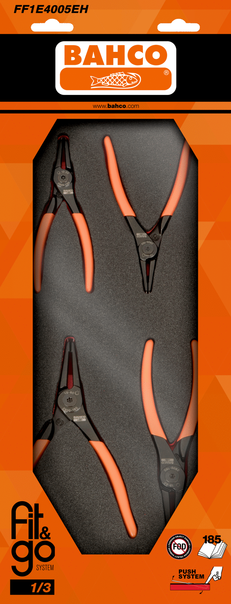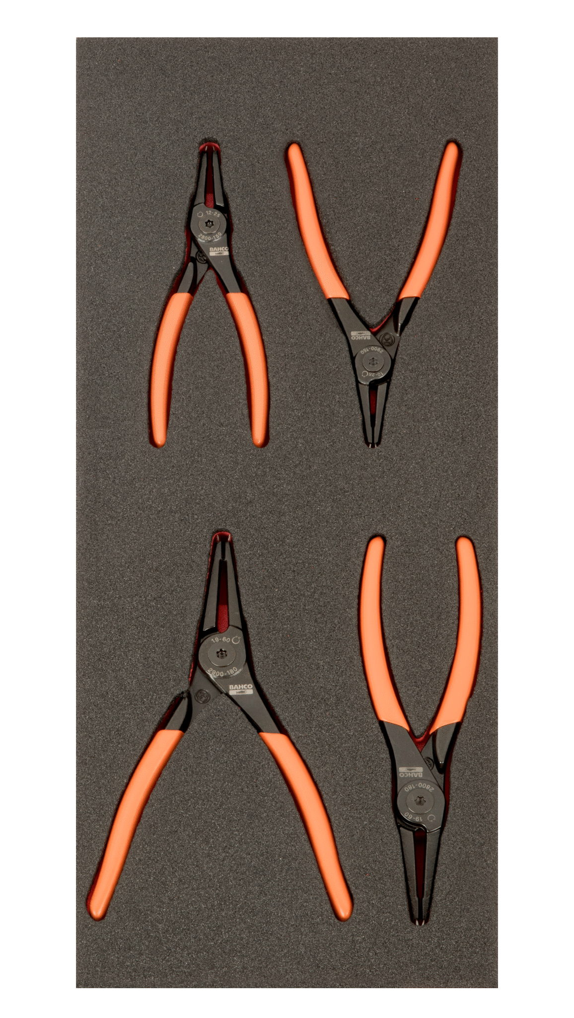 Zestaw 4 szczypiec do pierścieni wewnętrznych w wkładce z pianki BAHCO