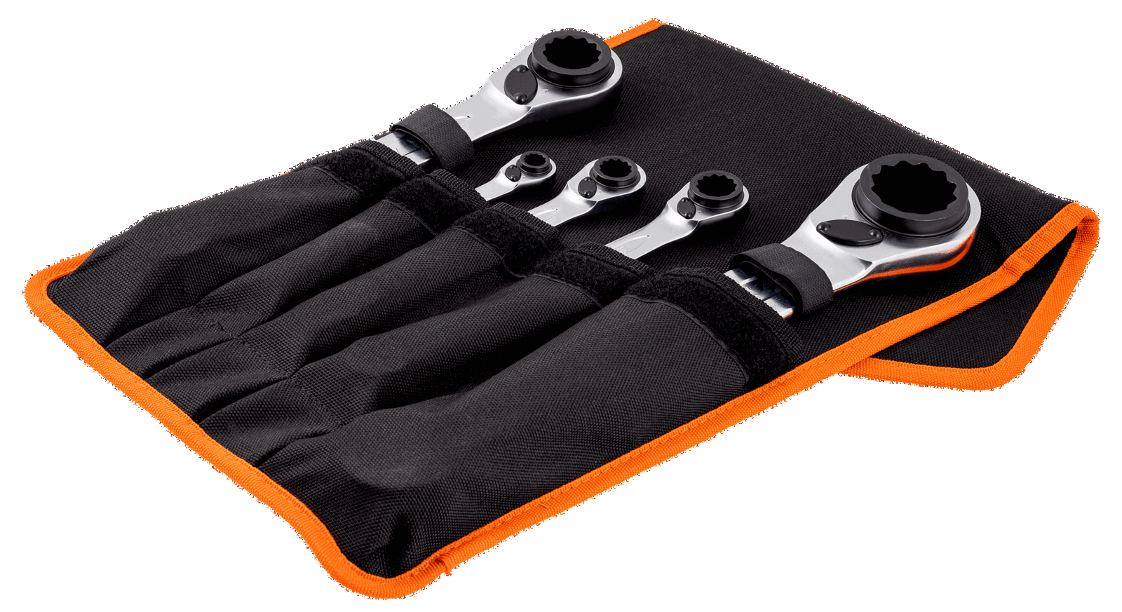 - Zestaw grzechotkowych kluczy “4 w jednym” w rozmiarach metrycznych