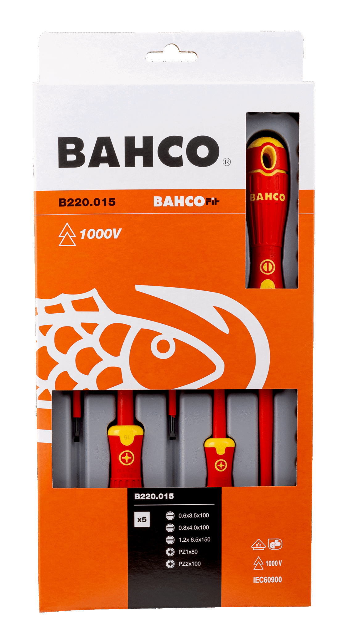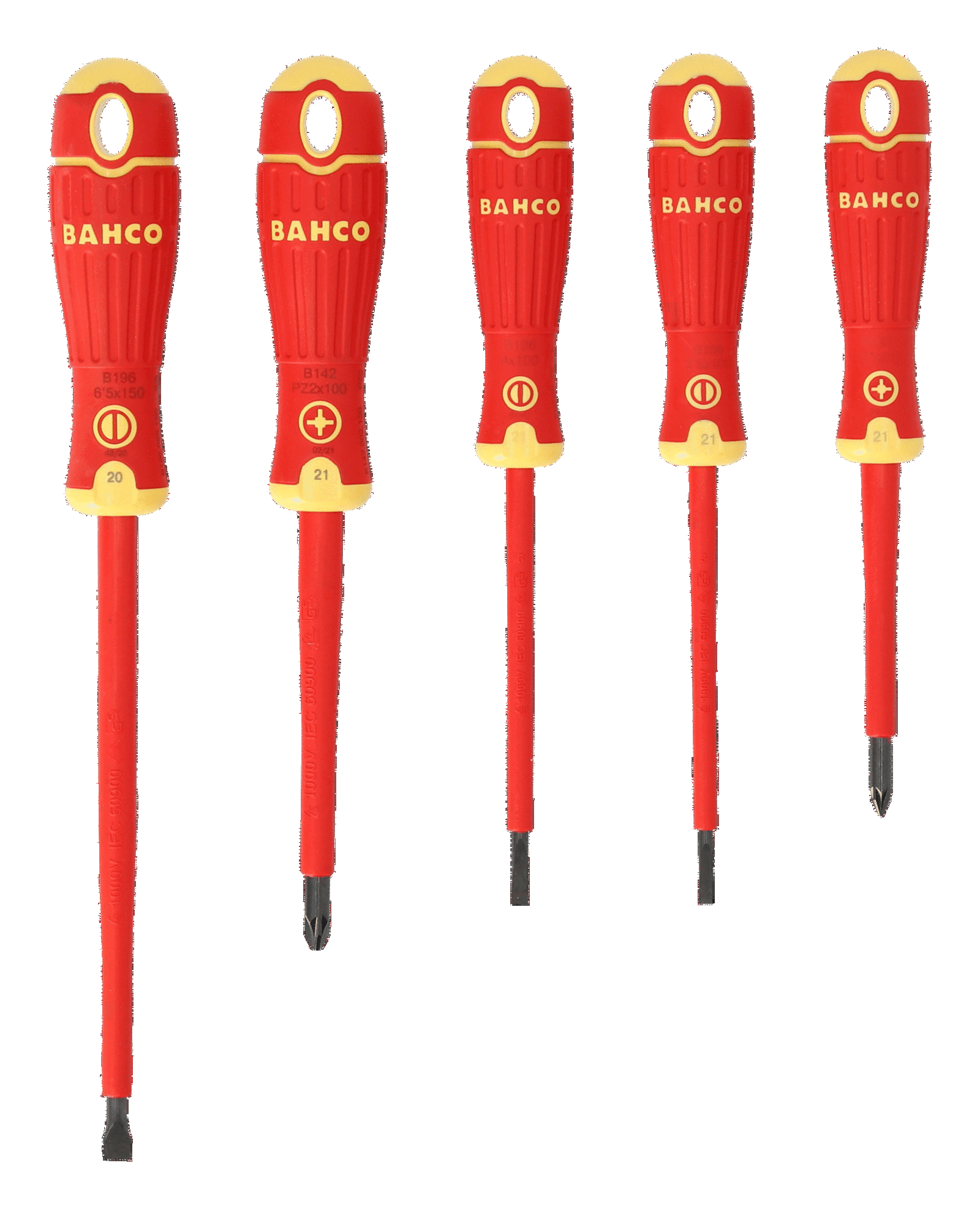 Zestaw 5 wkrętaków izolowanych BahcoFit do śrub prostych i Pozidriv BAHCO
