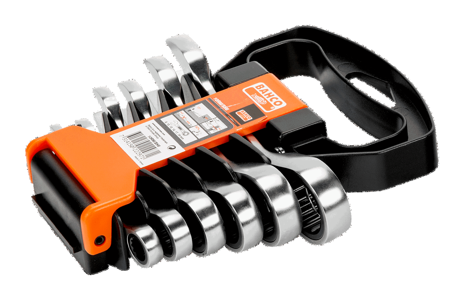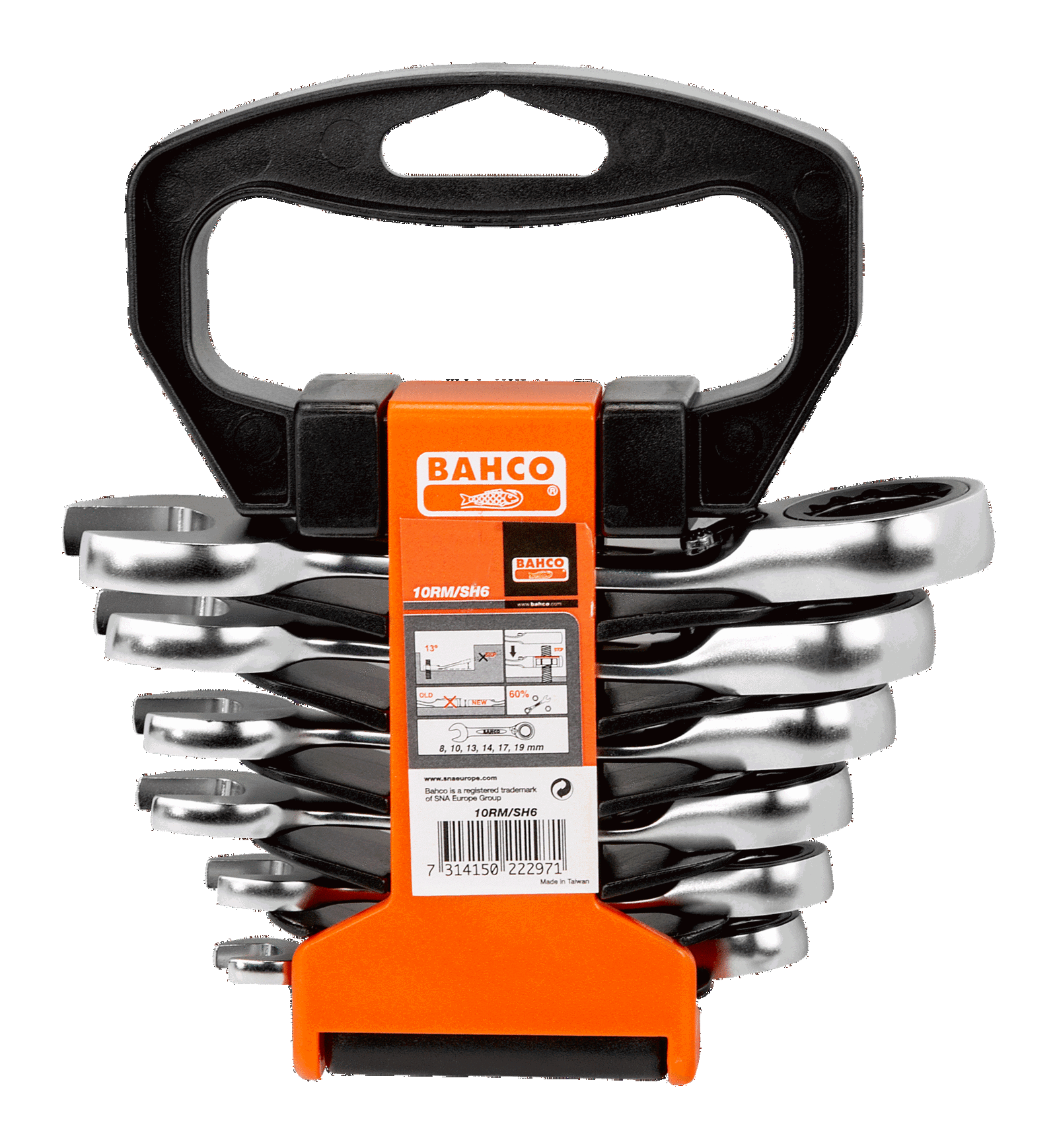 Zestaw 6 kluczy płasko-oczkowych z grzechotką, krótkich BAHCO