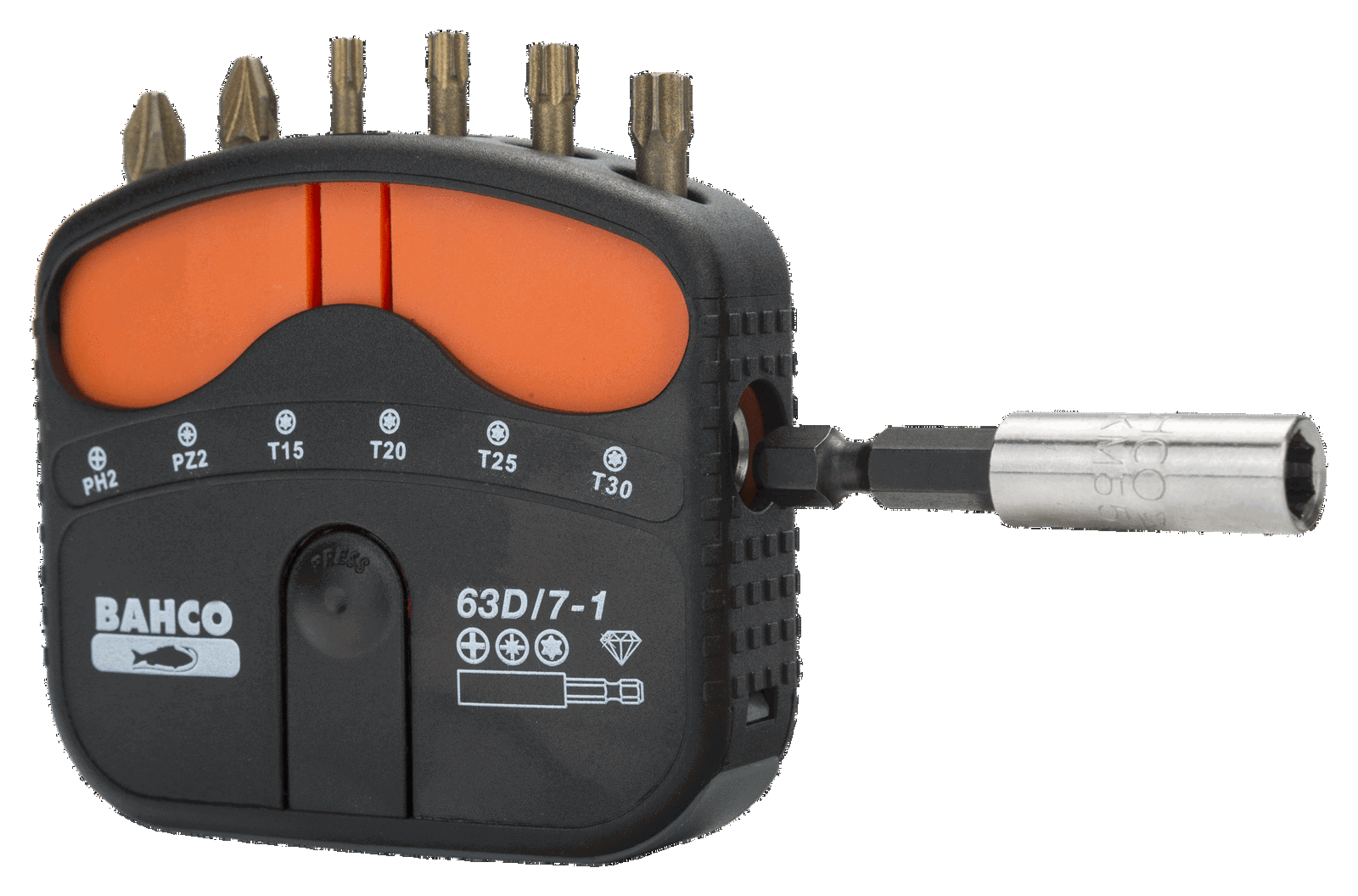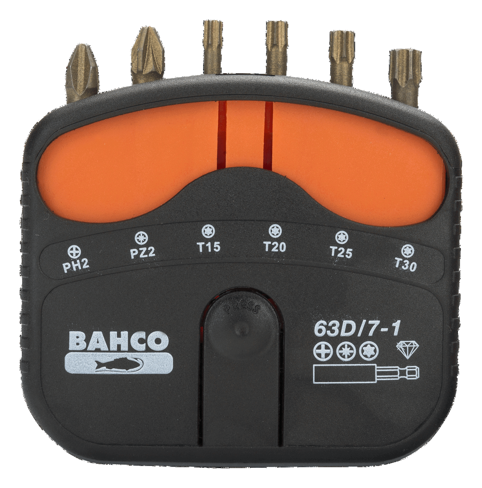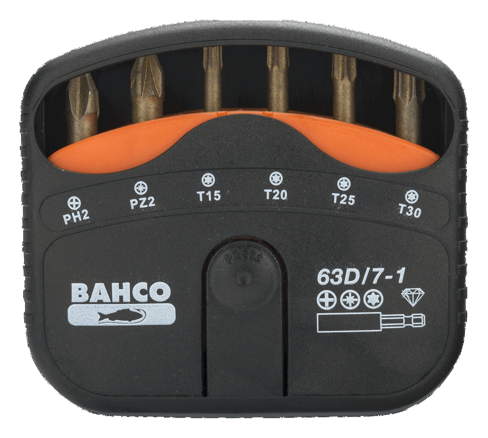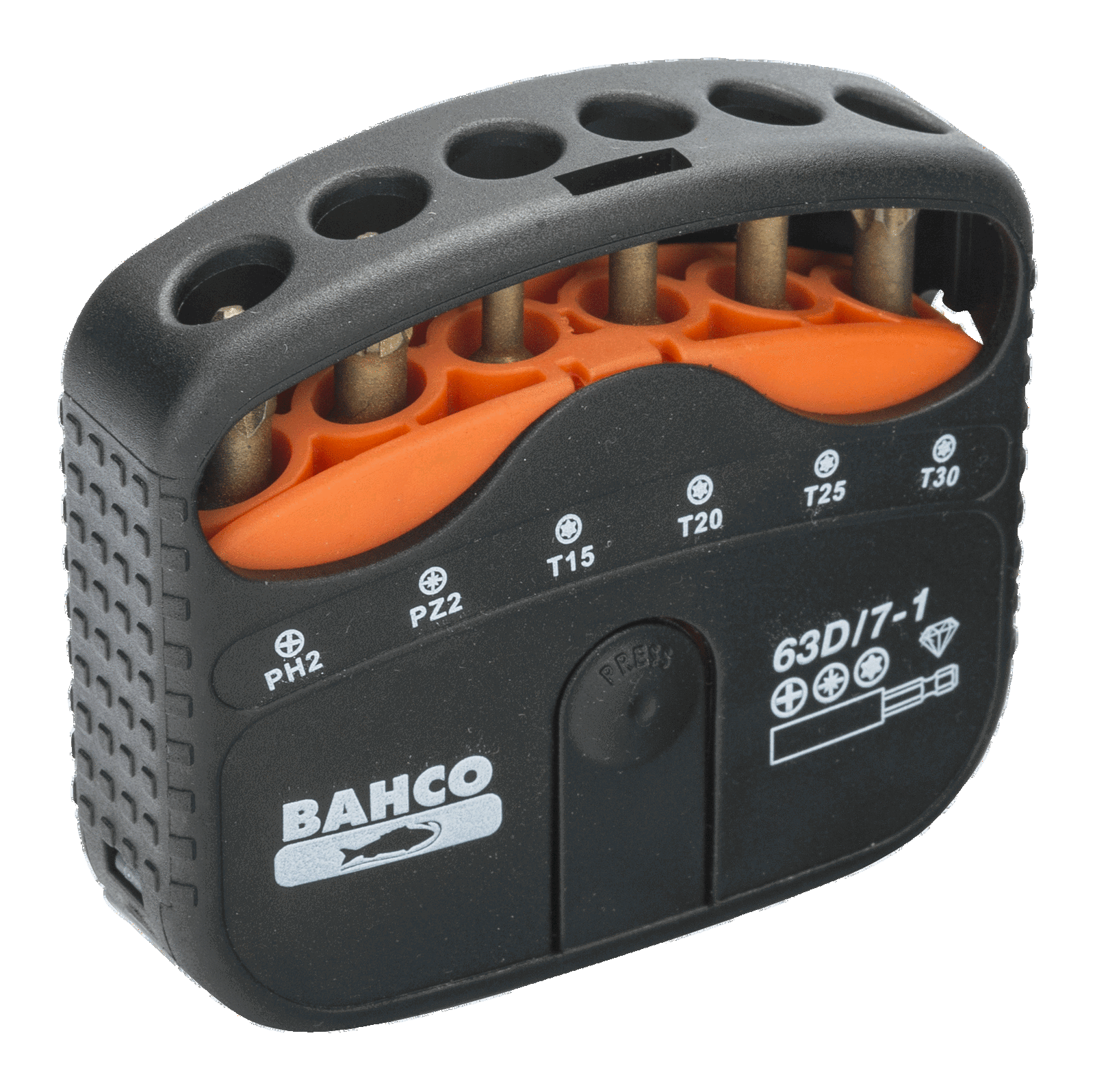 Zestaw 7 szt. bitów z powłoką diamentową PH,PZ,T z uniwersalnym uchwytem BAHCO
