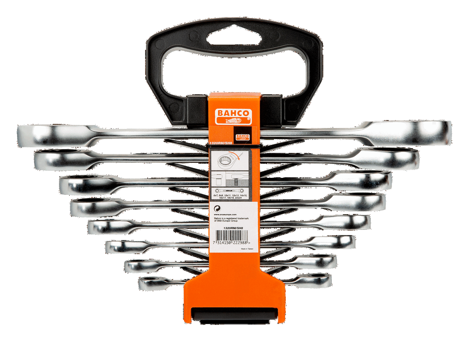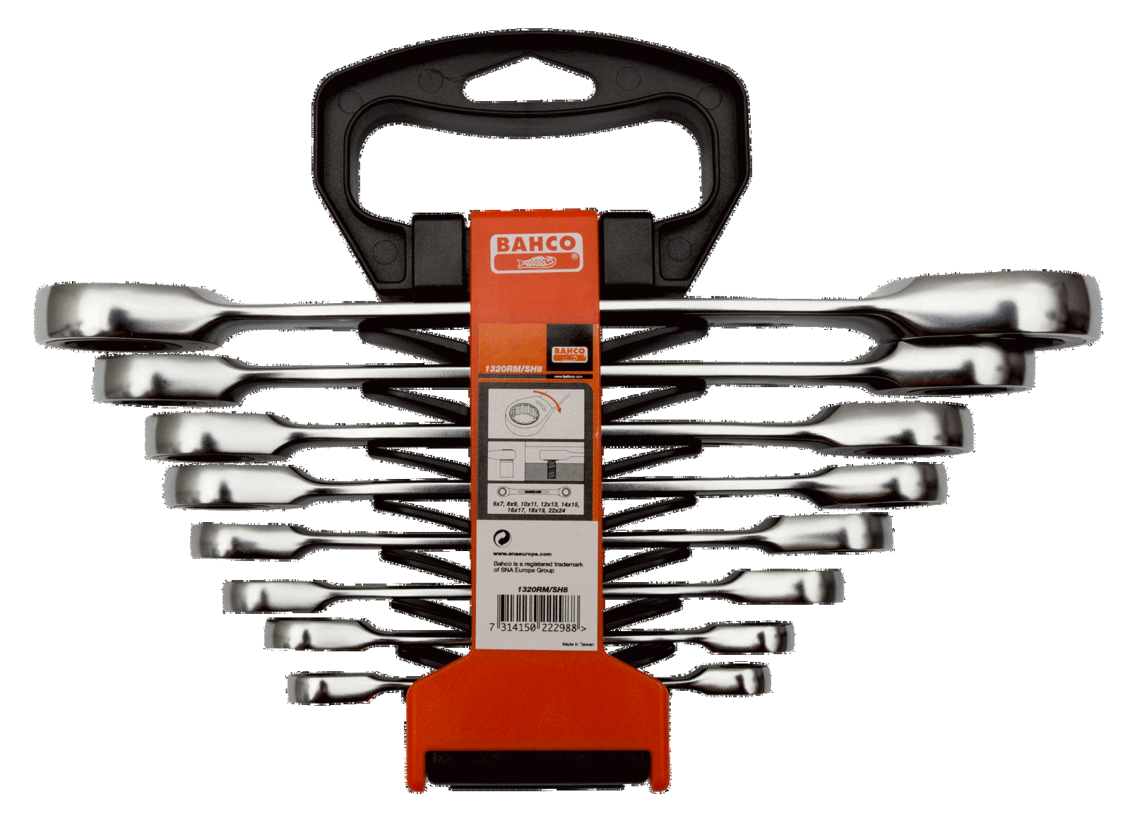 Zestaw 8 kluczy oczkowych grzechotkowych BAHCO