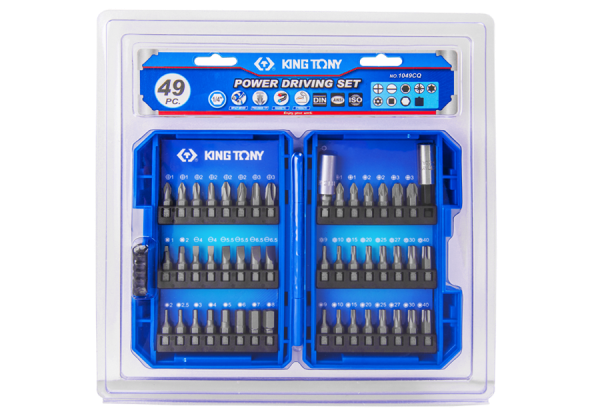 Bity wykonane są ze stali S2, końcówki nasadkowe ze stali chromowo-wanadowej. Całość w poręcznym plastikowy organizerze o wymiarach 150 x 103 x 46 mm. Karta produktu – 1049CQ