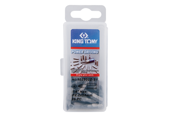 ZESTAW BITÓW 1/4″ POZIDRIV No.2 x 25mm PZ2, 25 SZT. W PUDEŁKU King Tony