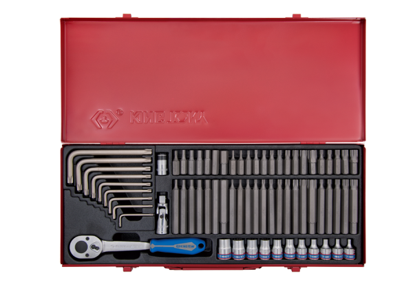 W zestawie nasadki: krótkie gwiazdkowe E4-E18, imbusy TORX z otworem T10H-T50H,bity HEX krótkie i długie H4-H12, bity SPLINE krótkie i długie M5-M12, bity TORX krótkie i długie T10-T60, uchwyt 3/8”do bitów, przegub kardana 3/8”, grzechotka 3/8” Karta produktu – 5169PR