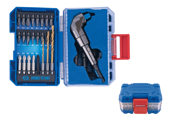 Zestaw akcesoriów 1/4″ do wkrętarki z adapterem kątowym King Tony 45 elementów.