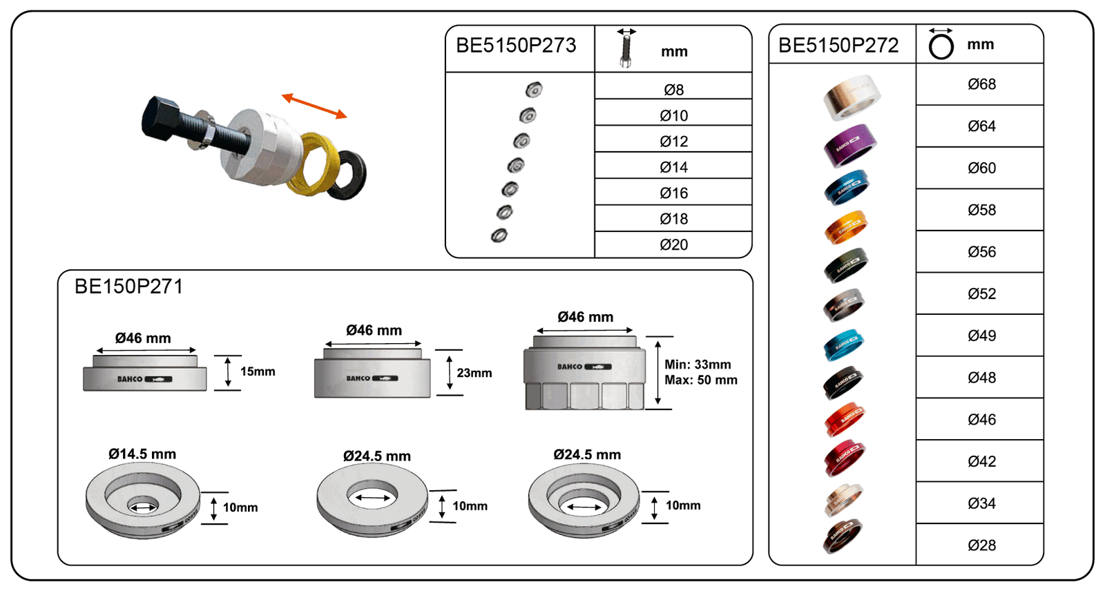 - Contents: – 7 śrub [BE5150P273]- 6 extension caps [BE5150P271]- 12 seal attachments [BE5150P272]