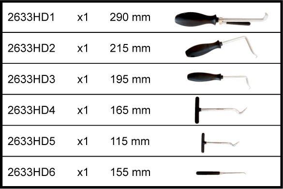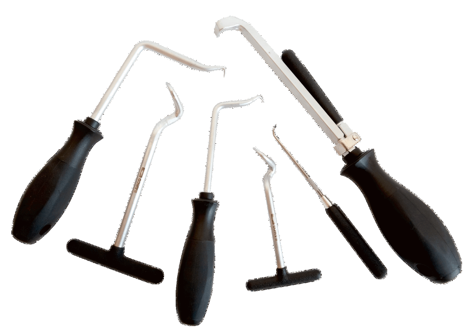 - Narzędzia w zestawie, dzięki różnym kształtom i długościom umożliwiają usuwanie szerokiej gamy uszczelek, o-ringów, itp.