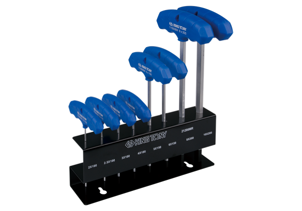 ZESTAW IMBUSÓW CALOWYCH Z UCHWYTEM “T” 8szt. 1155 – HEX 5/64″ – 3/8″, STOJAK King Tony